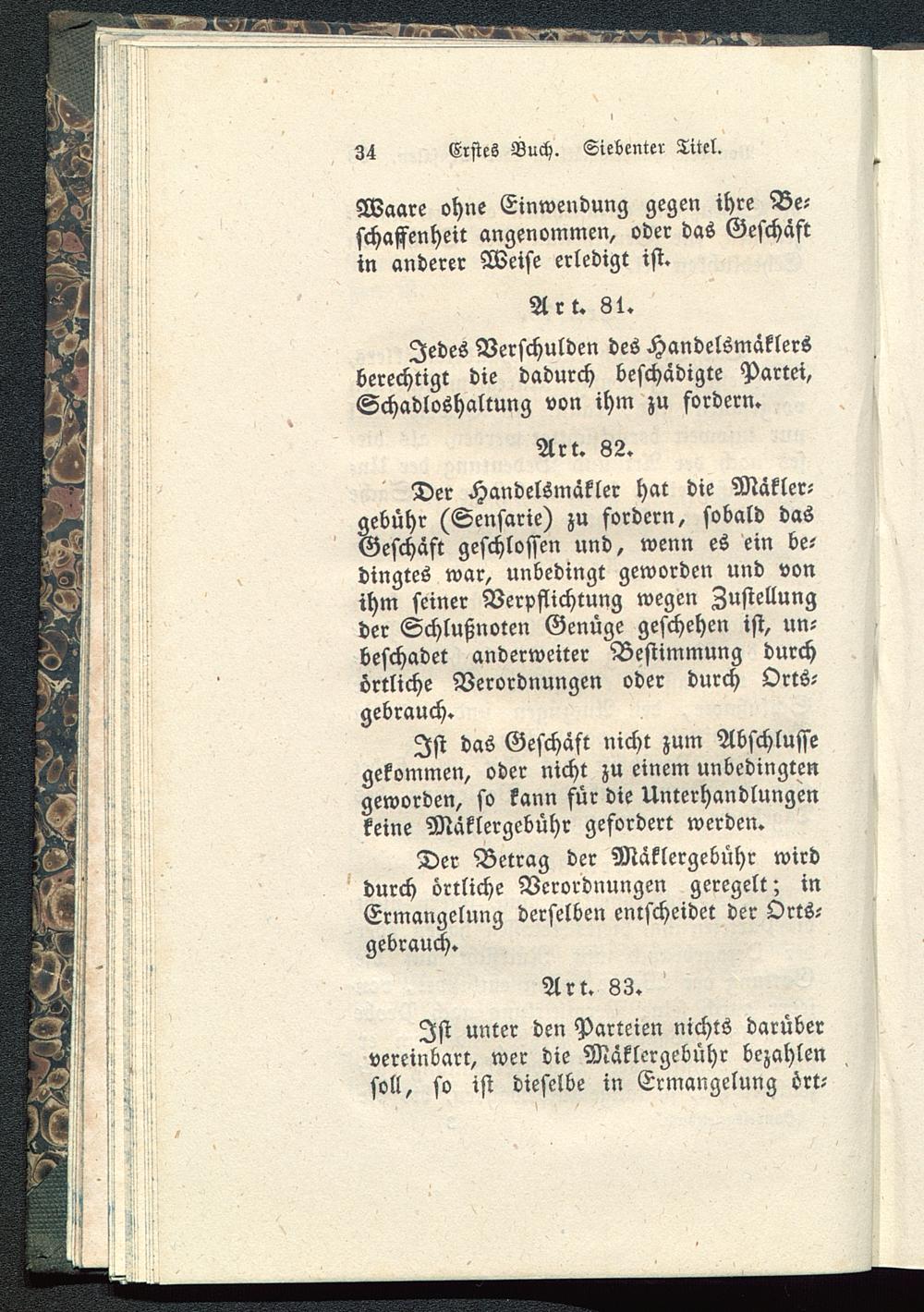 Der Handelsmäkler hat die Mäkler-gebühr (Sensarie) zu fordern, sobald dasGeschäft geschlossen und, wenn es ein be-dingtes war, unbedingt geworden und vonihm seiner Verpflichtung wegen Zustellungder Schlußnoten Genüge geschehen ist, un-beschadet anderweiter Bestimmung durchörtliche Verordnungen oder durch Orts-gebrauch.