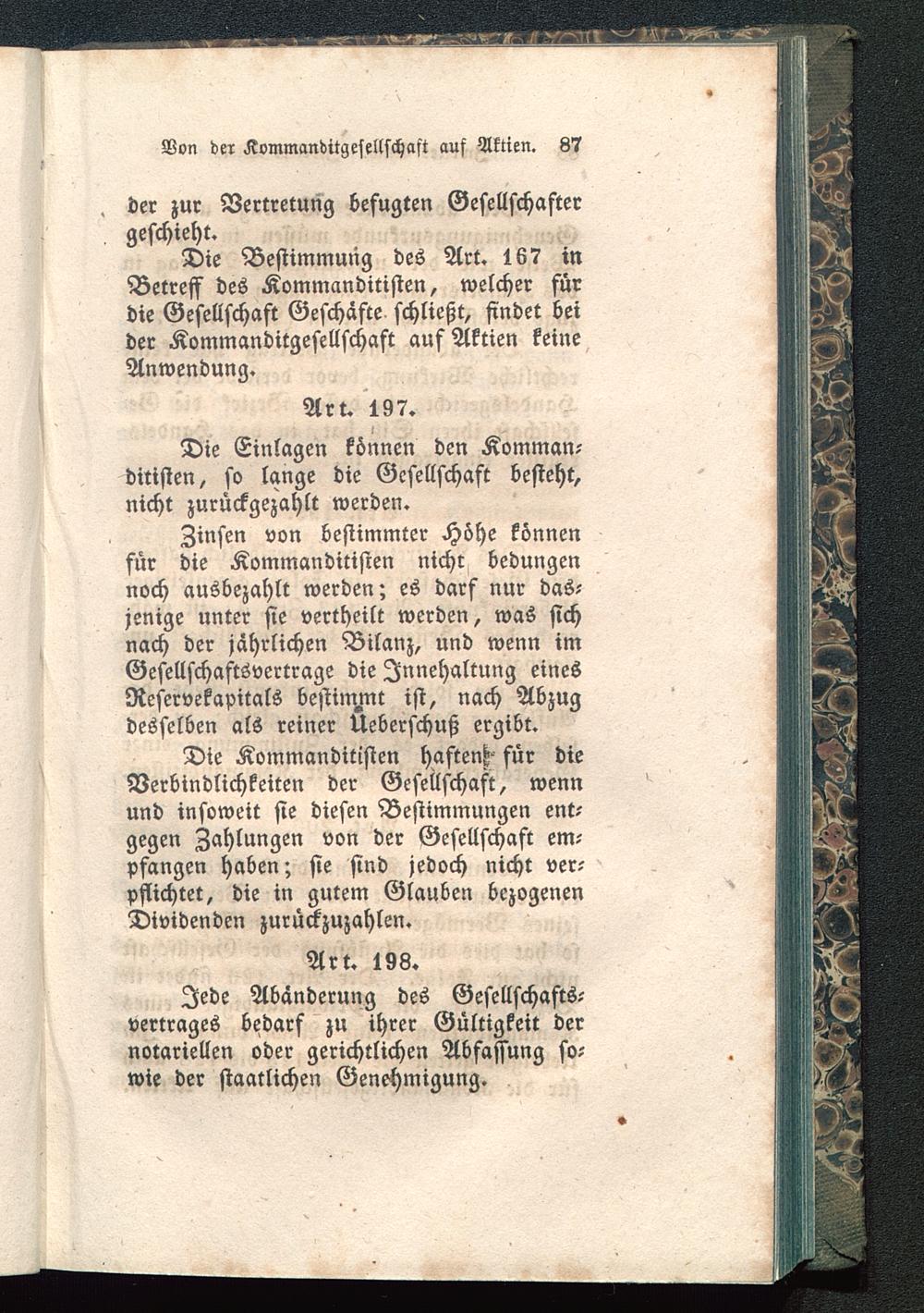 Die Bestimmung des Art. 167 inBetreff des Kommanditisten, welcher fürdie Gesellschaft Geschäfte schließt, findet beider Kommanditgesellschaft auf Aktien keineAnwendung.