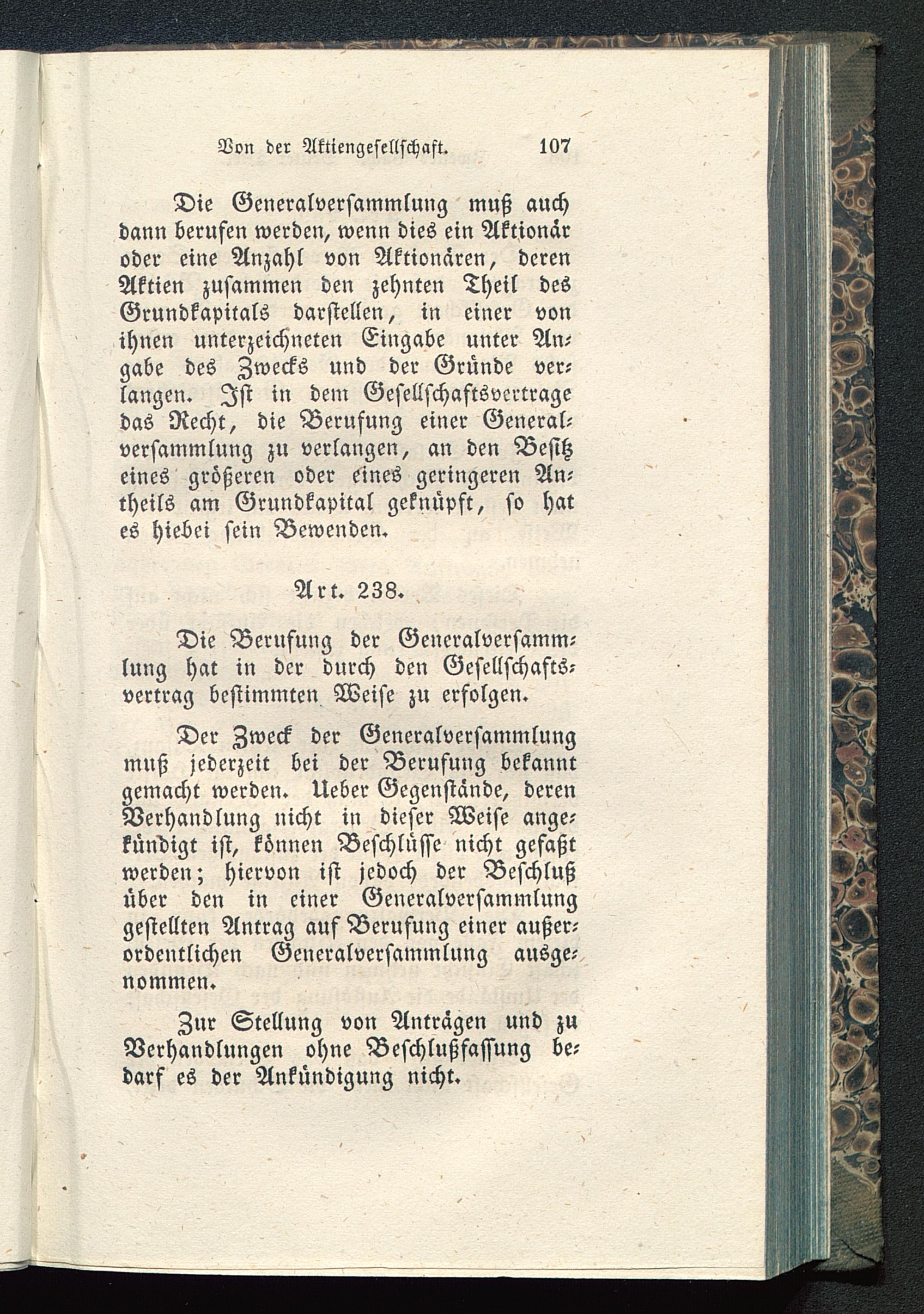 Die Generalversammlung muß auchdann berufen werden, wenn dies ein Aktionäroder eine Anzahl von Aktionären, derenAktien zusammen den zehnten Theil desGrundkapitals darstellen, in einer vonihnen unterzeichneten Eingabe unter Amgäbe des Zwecks und der Gründe ver-langen. Ist in dem Gesellschaftsvcrtragedas Recht, die Berufung einer General-versammlung zu verlangen, an den Besitzeines größeren oder eines geringeren An-theils am Grundkapital geknüpft, so hates hiebet sein Bewenden.
