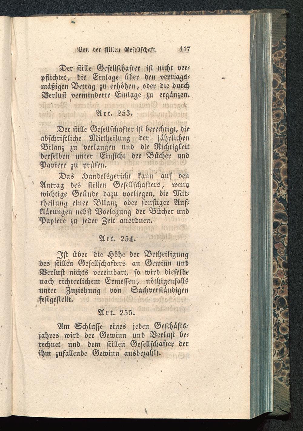 Der stille Gesellschafter ist berechtigt, dieabschristliche Mittheilung der jährlichenBilanz zu verlangen und die Richtigkeitderselben unter Einsicht der Bücher undPapiere zu prüfen.