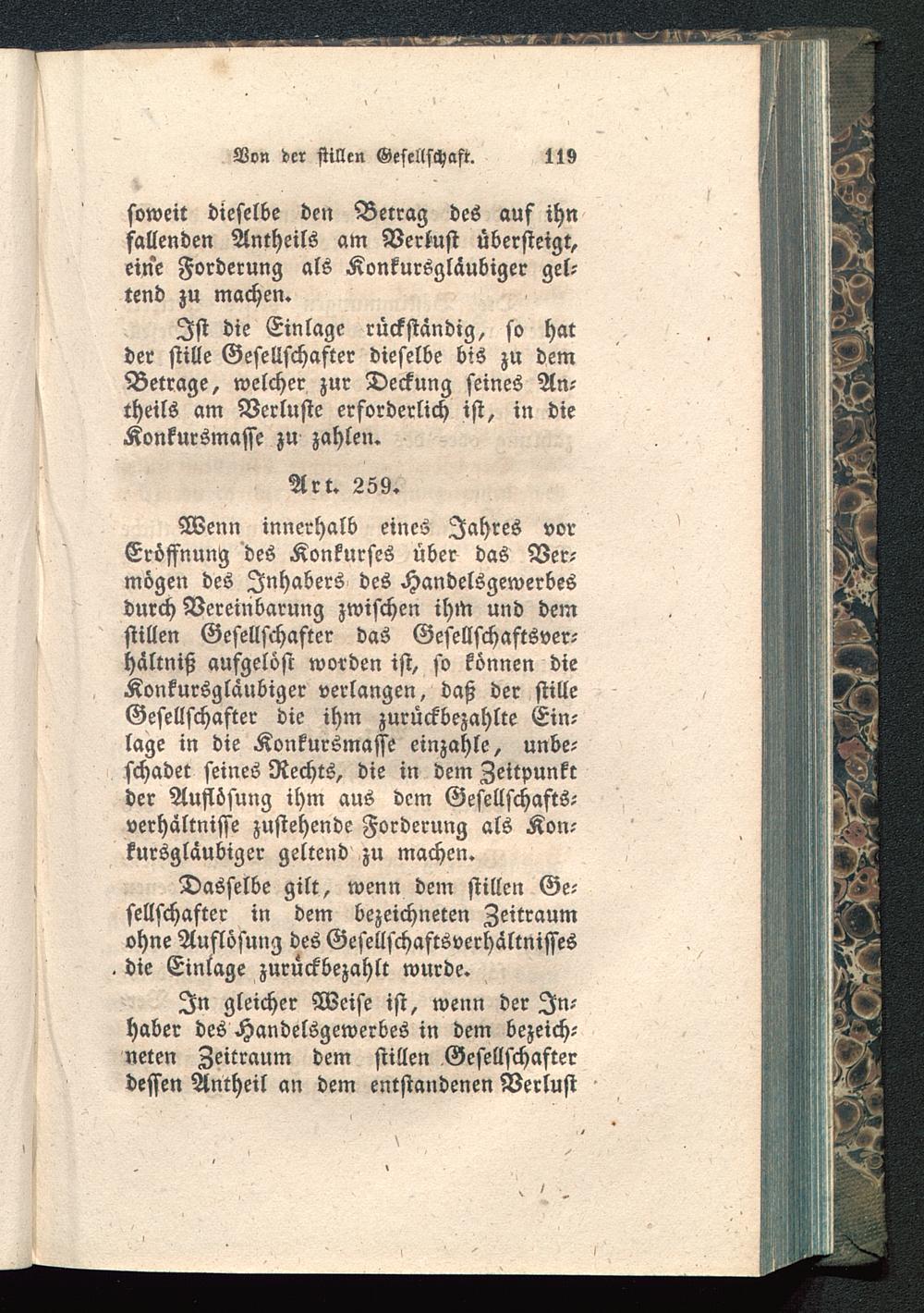 Wenn innerhalb eines Jahres vorEröffnung des Konkurses über das Ver-mögen des Inhabers des Handelsgewerbesdurch Vereinbarung zwischen ihm und demstillen Gesellschafter das Gesellschaftsver-hältniß aufgelöst worden ist, so können dieKonkursgläubiger verlangen, daß der stilleGesellschafter die ihm zurückbezahlte Ein-lage in die Konkursmasse einzahle, unbe-schadet seines Rechts, die in dem Zeitpunktder Auflösung ihm aus dem Gesellschafts-verhältnisse zustehende Forderung als Kon-kursgläubiger geltend zu machen.