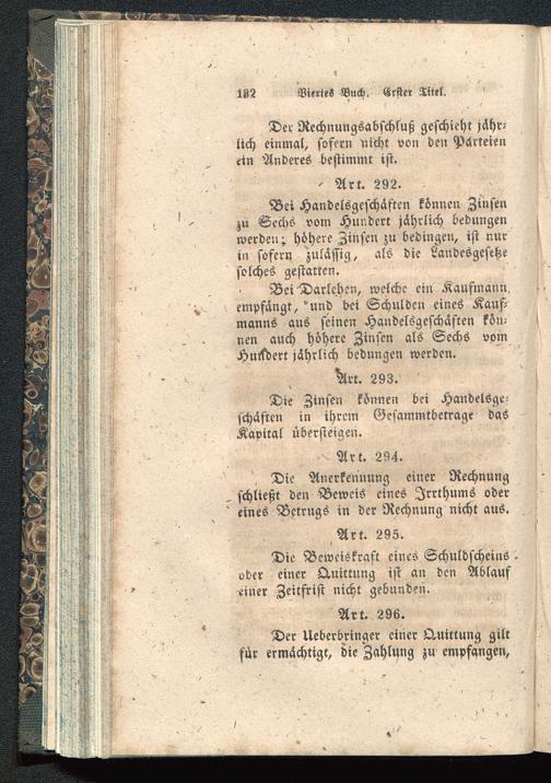 Bei ^Darlehen, welche ein Kaufmann,empfängt, 'und bei Schulden eines Kauf-manns aus seinen Handelsgeschäften kön-nen auch höhere Zinsen als Secks vomHundert jährlich bedungen werden.