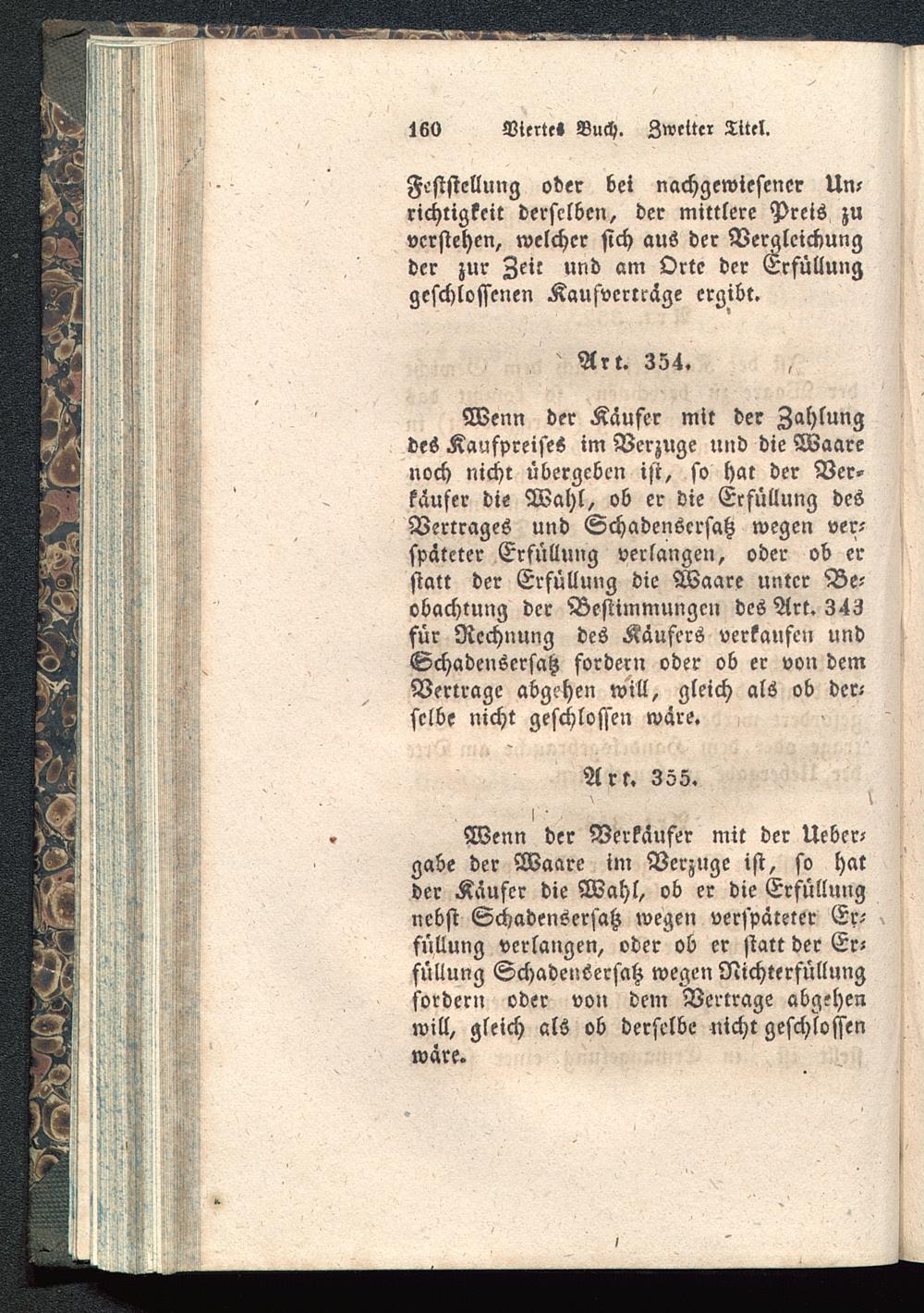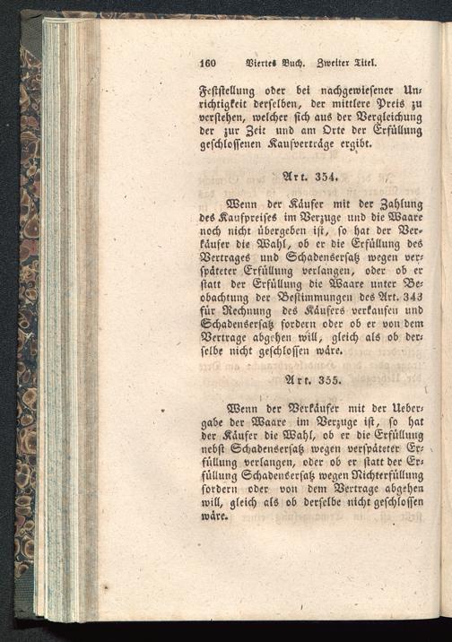 Wenn der Käufer mir der Zahlungdes Kaufpreises im Verzüge und die Waarenoch nicht übergeben ist, so hat der Ver-käufer die Wahl, ob er die Erfüllung desVertrages und Schadensersatz wegen ver-späteter Erfüllung verlangen, oder ob erstatt der Erfüllung die Waare unter Be-obachtung der Bestimmungen des Art. 343für Rechnung des Käufers verkaufen undSchadensersatz fordern oder ob er von demVertrage abgehen will, gleich als ob der-selbe nicht geschlossen wäre.