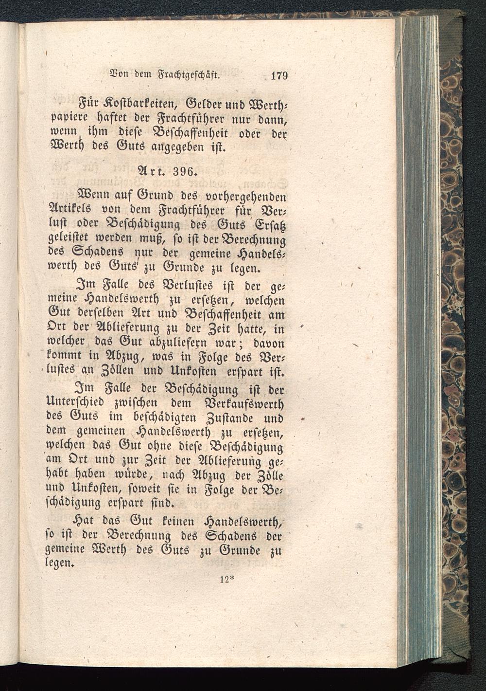 Im Falle des Verlustes ist der ge-meine Handelswerth zu ersetzen, welchenGut derselben Art und Beschaffenheit amOrt der Ablieferung zu der Zeit hatte, in 'welcher das Gut abzuliefern war; davonkommt in Abzug, was in Folge des Ver-lustes an Zöllen und Unkosten erspart ist.