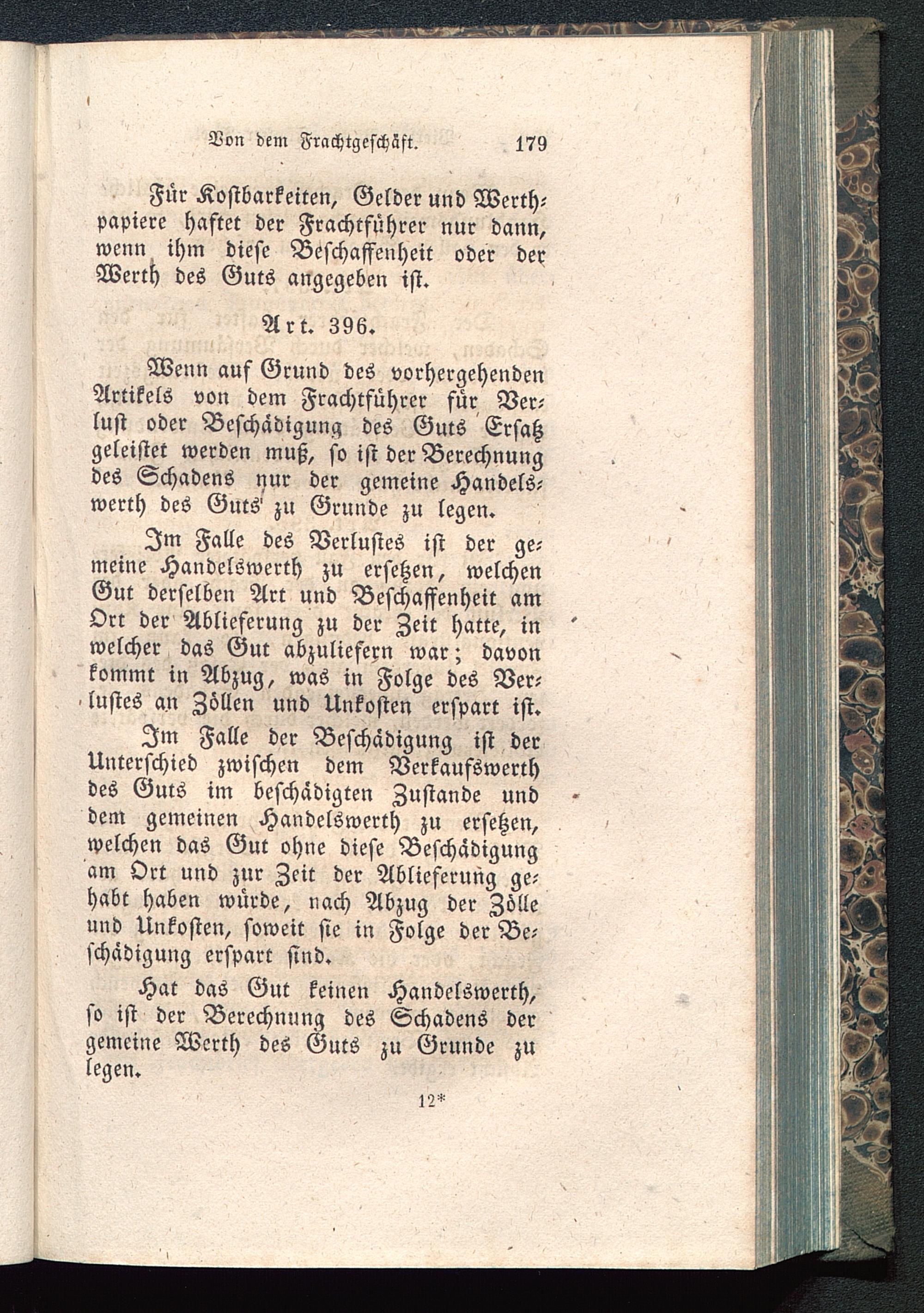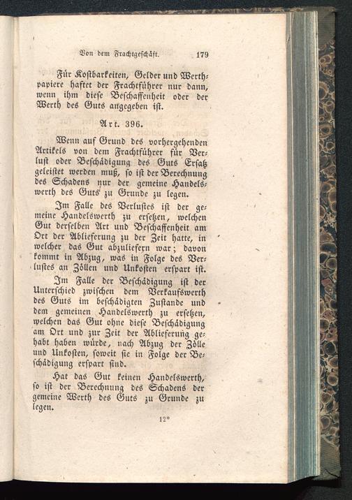 Für Kostbarkeiten, Gelder und Werth-papiere haftet der Frachtführer nur dann,wenn ihm diese Beschaffenheit oder derWerkt) des Guts angegeben ist.