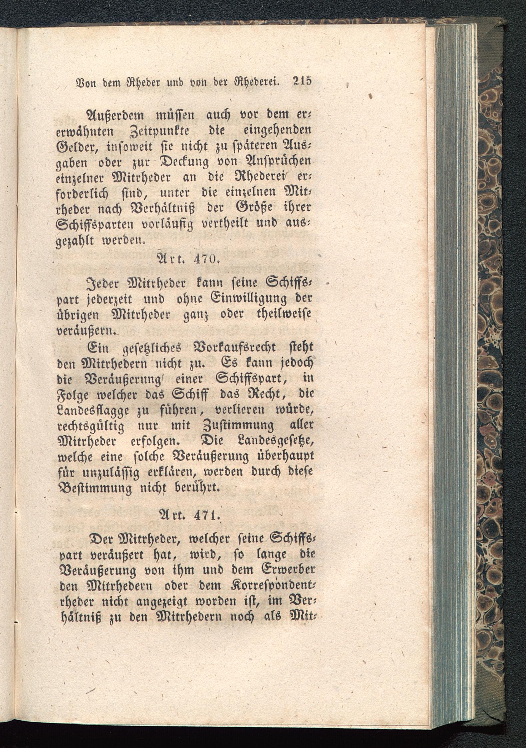 Jeder Mitrheder kann seine Schiffs-part jederzeit und ohne Einwilligung derübrigen Mitrheder ganz oder theilweiseveräußern.