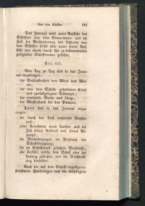 Das Journal wird unter Aufsicht desSchiffers von dem Steuermann und imFall der Verhinderung des Letzteren vondem Schiffer selbst oder unter seiner Auf-sicht von einem durch ihn zu bestimmendengeeigneten Schiffsmann geführt.