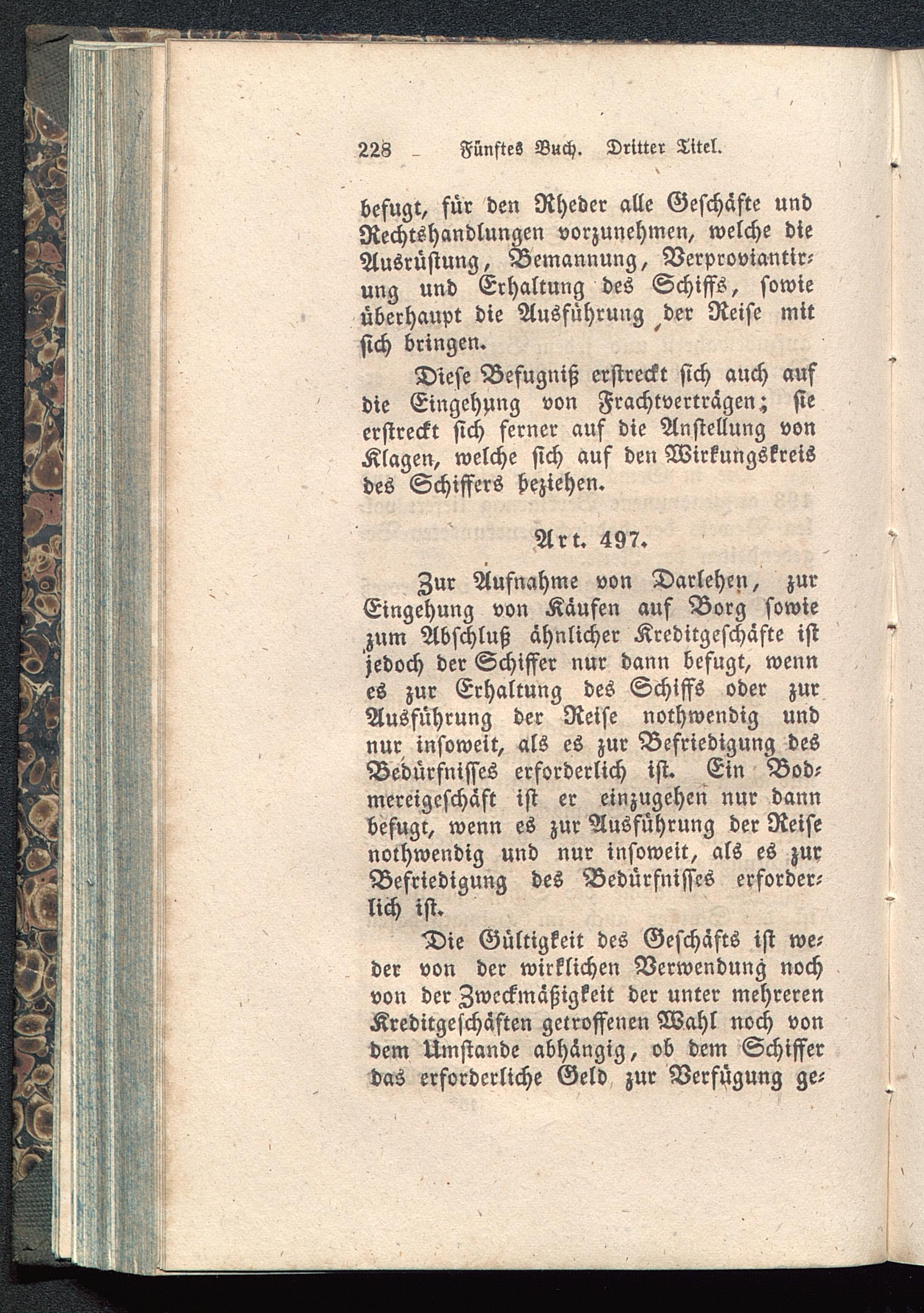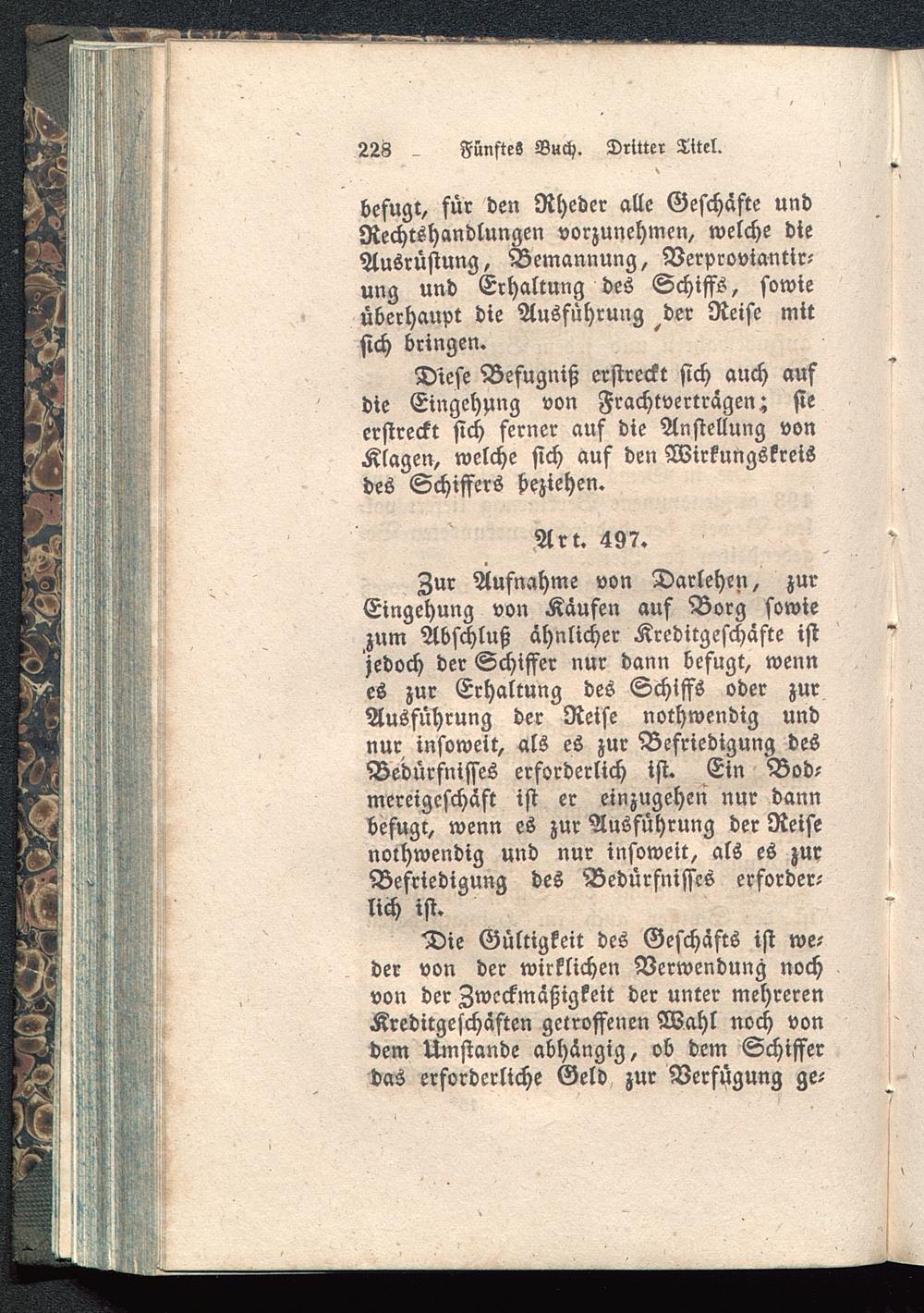 Zur Aufnahme von Darlehen, zurEingehung von Kaufen auf Borg sowiezum Abschluß ahnlicher Kreditgeschäfte istjedoch der Schiffer nur dann befugt, wennes zur Erhaltung des Schiffs oder zurAusführung der Reise nothwendig undnur insoweit, als es zur Befriedigung desBedürfnisses erforderlich ist. Ein Bod-mereigeschäft ist er einzugehen nur dannbefugr, wenn es zur Ausführung der Reisenothwendig und nur insoweit, als es zuxBefriedigung des Bedürfnisses erforder-lich ist.