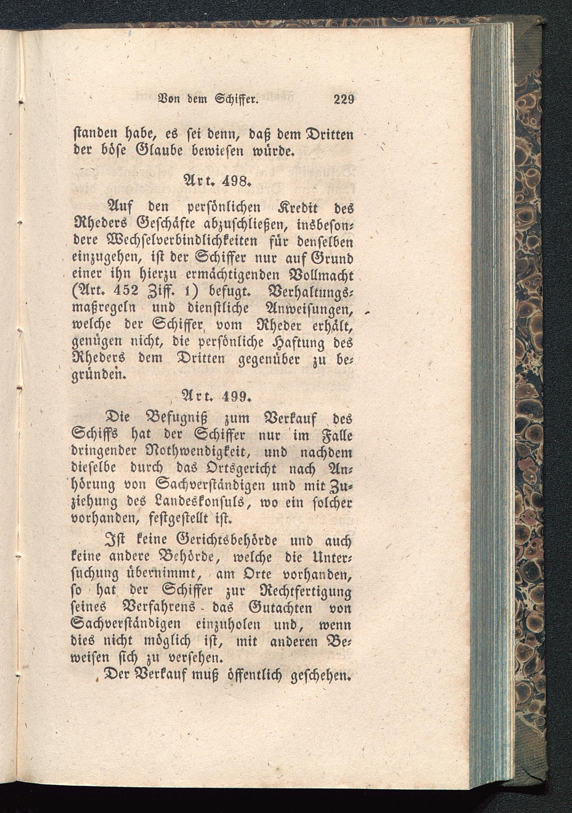 Die Befugniß zum Verkauf desSchiffs hat der Schiffer nur im Falledringender Nothwendigkeit, und nachdemdieselbe durch das Ortsgericht nach An-hörung von Sachverständigen und mit Zu«ziehung des Landeskonsuls, wo ein solchervorhanden, festgestellt ist.
