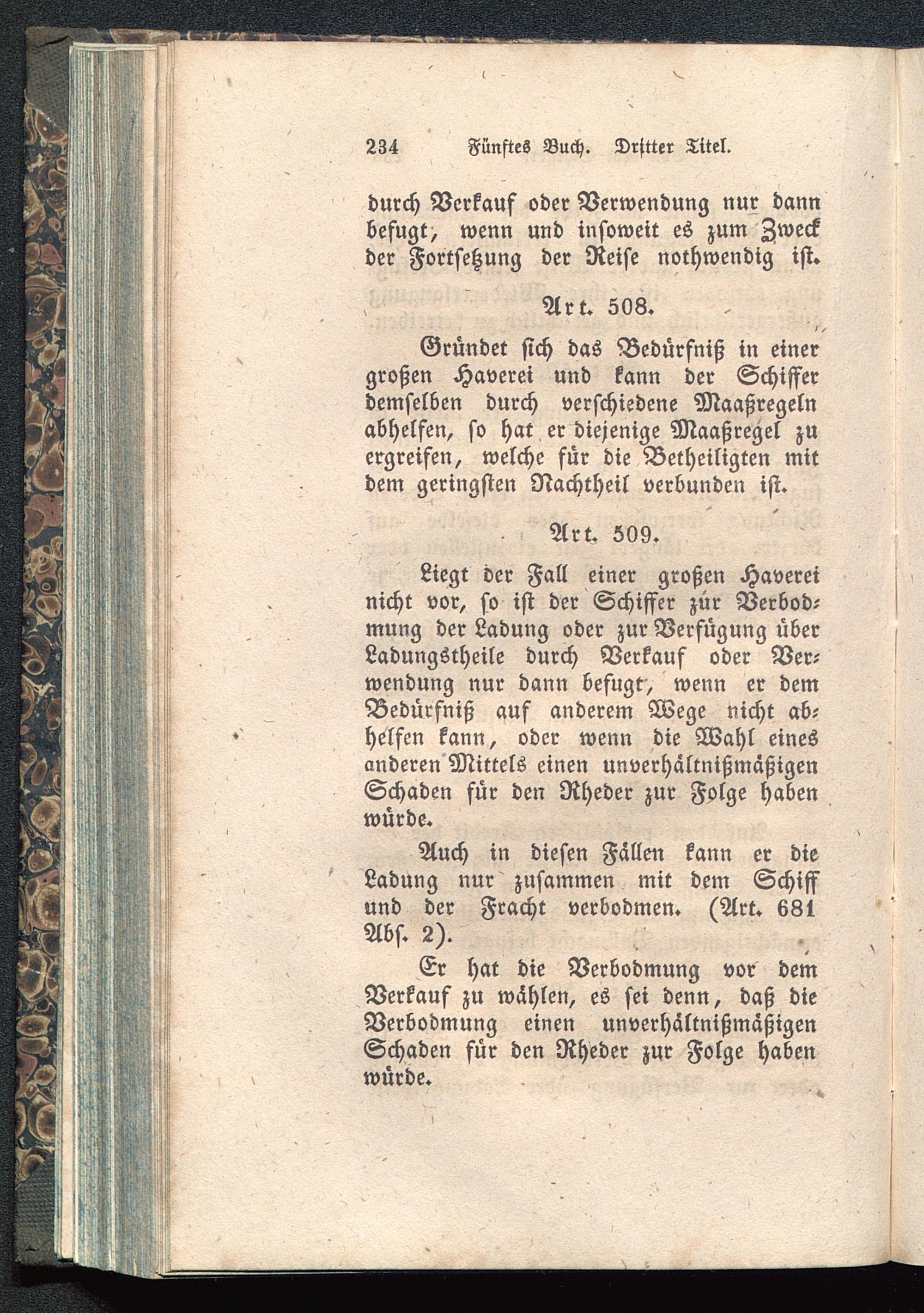 Er hat die Verbodmung vor demVerkauf zu wählen, es sei denn, daß dieVerbodmung einen unverhaltnißmäßigenSchaden für den Rheder zur Folge habenwürde.
