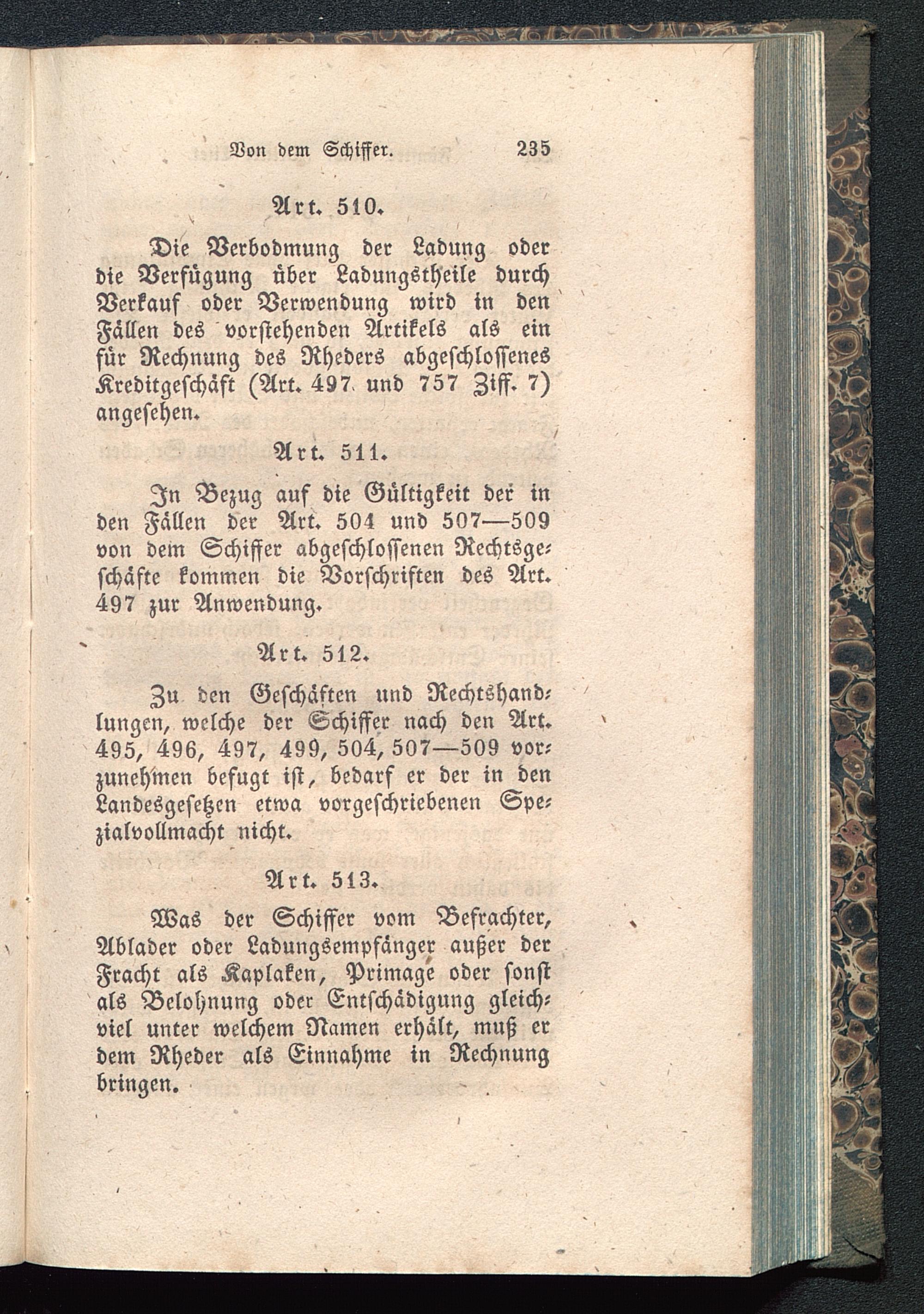 Zu den Geschäften und Rechtshand-lungen, welche der Schiffer nach den Art.495, 496, 497, 499, 504, 507—509 vor-zunehmen befugt ist, bedarf er der in denLandesgesetzen etwa vorgeschriebenen Spe-zialvollmacht nicht.