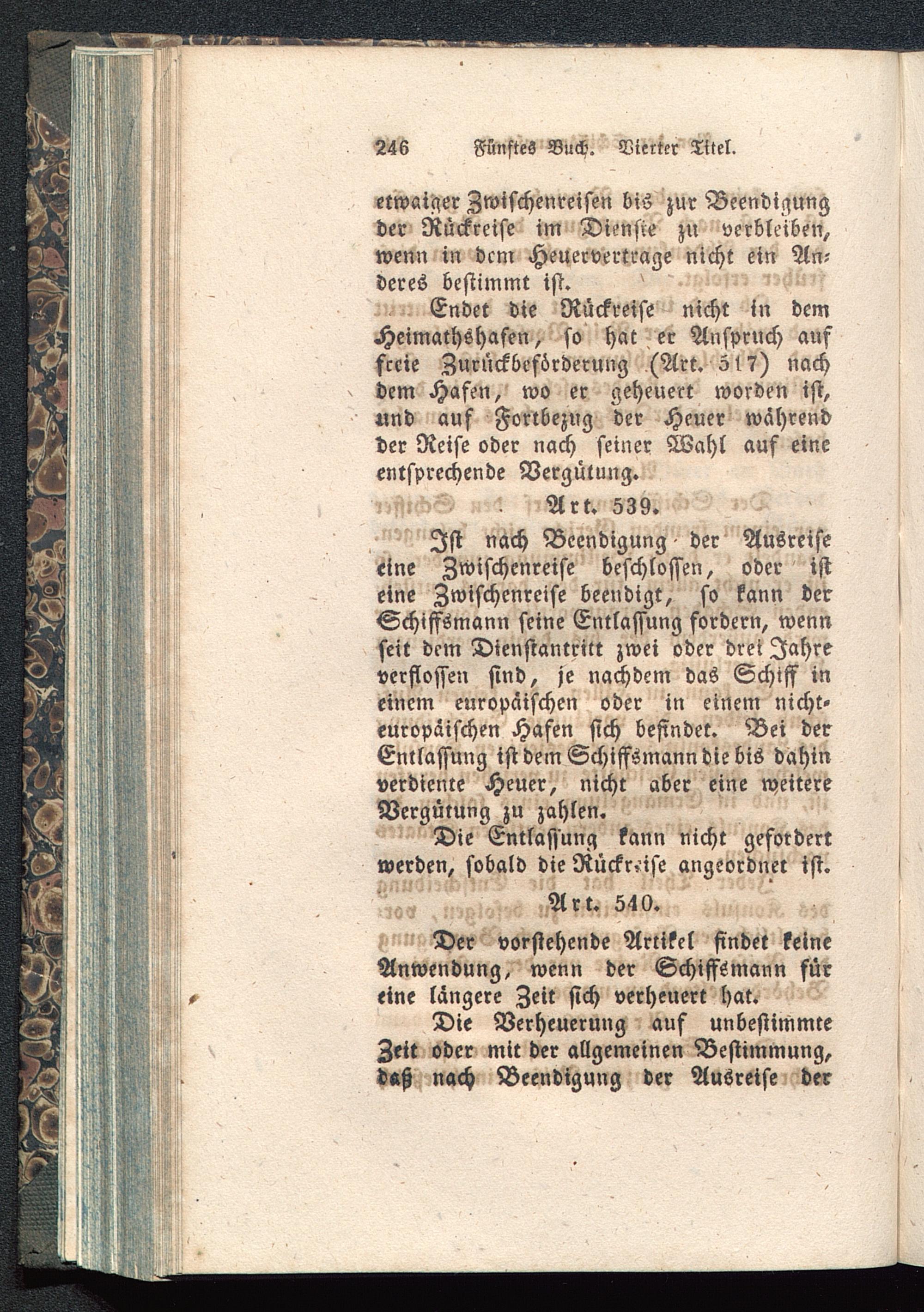 Ist nach Beendigung der Ausreiseeine Zwischenreise beschlossen, oder isteine Zwischenreise beendigt, so kann derSchiffsmann seine Entlassung fordern, wennseit dem Dienstantritt zwei oder drei Jahreverflossen sind, je nachdem das Schiff ineinem europaischen oder in einem nicht-europäischen Hafen sich befindet. Bei derEntlassung ist dem Schiffsmann die bis dahinverdiente Heuer, nicht aber eine weitereVergütung zu zahlen.