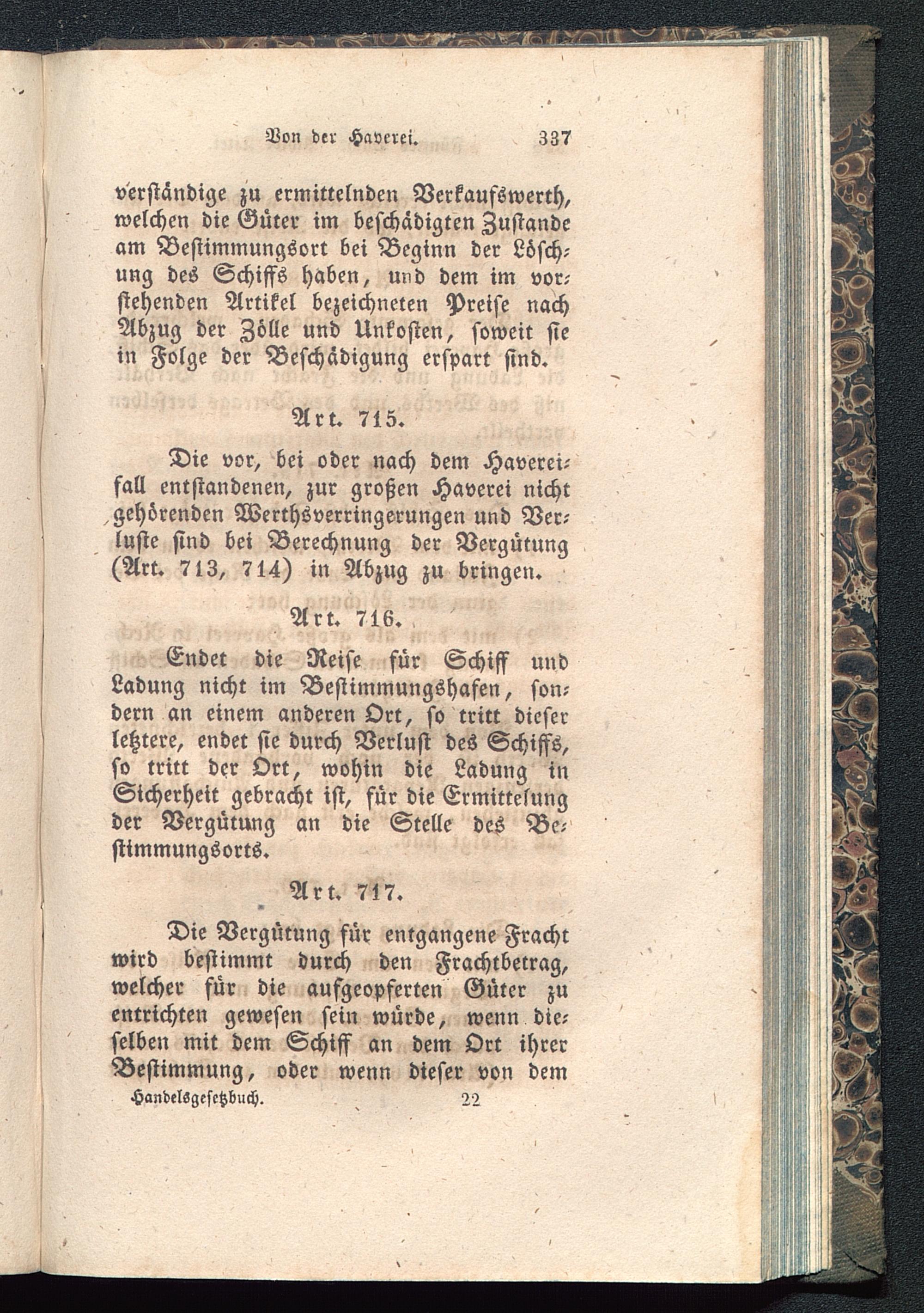 Die vor, bei oder nach dem Haverei-fall entstandenen, zur großen Haverei nichtgehörenden Werthsverringerungen und Ver-luste sind bei Berechnung der Vergütung(Art. 713, 714) in Abzug zu bringen.
