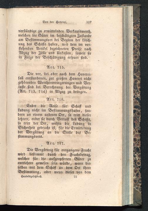 verständige zu ermittelnden Verkaufswerth,welchen die Güter im beschädigten Zustandeam Bestimmungsort bei Beginn der Lösch-ung des Schiffs haben, und dem im vor-stehenden Artikel bezeichneten Preise nachAbzug der Zölle und Unkosten, soweit siein Folge der Beschädigung erspart sind.