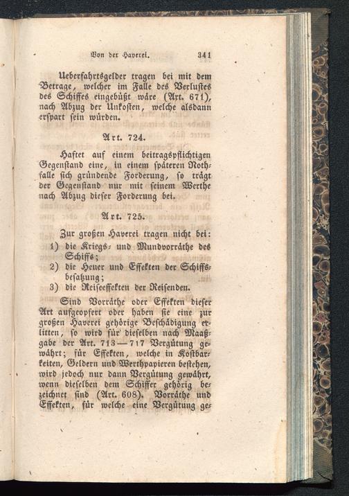 Sind Vorräthe oder Effekten dieserArt aufgeopfert oder haben sie eine zurgroßen Haverei gehörige Beschädigung er-litten, so wird für' dieselben nach Maaß-gabe der Art. 713 — 7!7 Vergütung ge-währt; für Effekten, welche in Kostbar-- ketten, Geldern und Werthpapieren bestehen,wird jedoch nur dann Vergütung gewährt,wenn dieselben dem Schiffer gehörig be-zeichnet sind (Art. 608). Vorräthe undEffekten, für welche eine Vergütung ge-