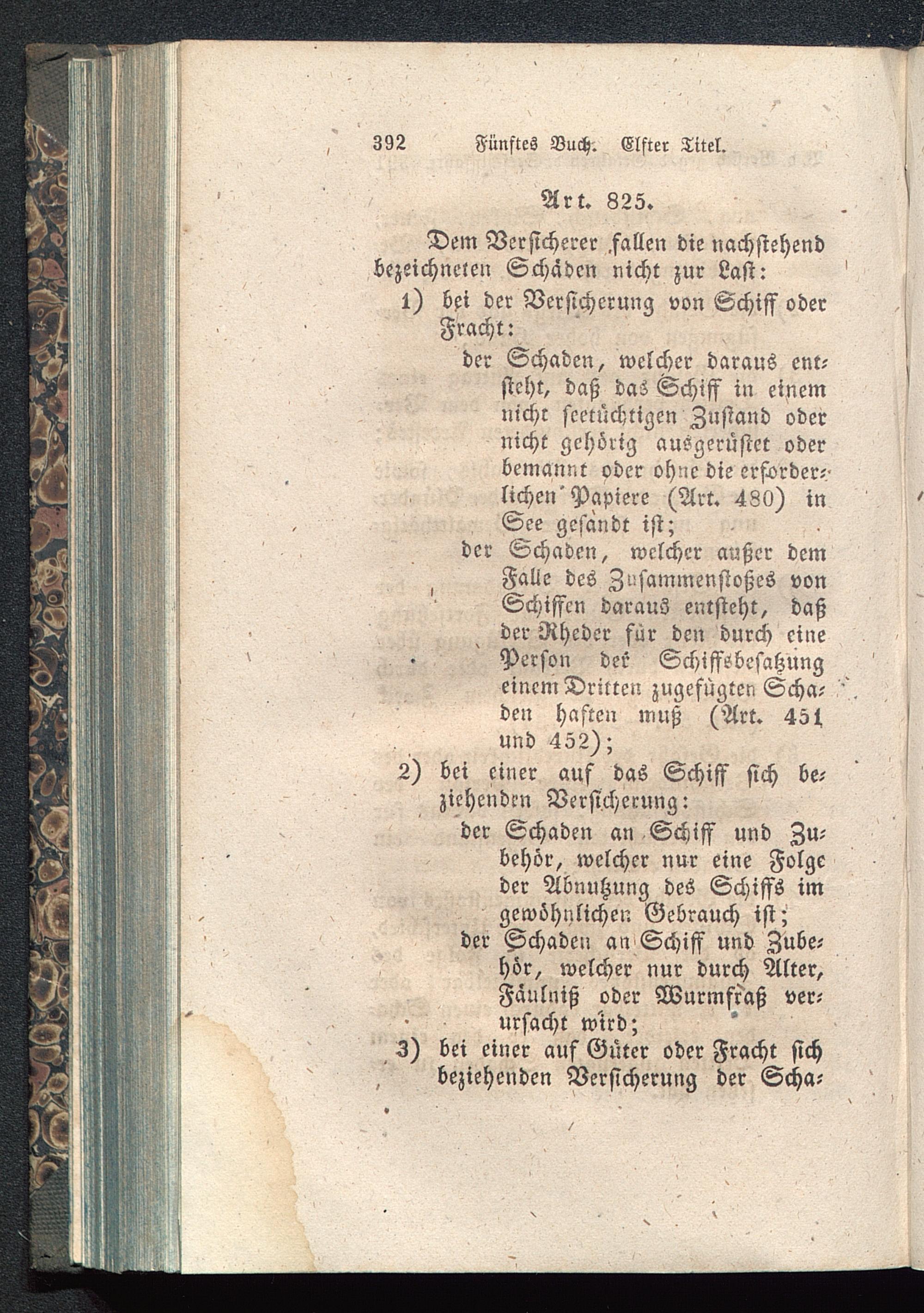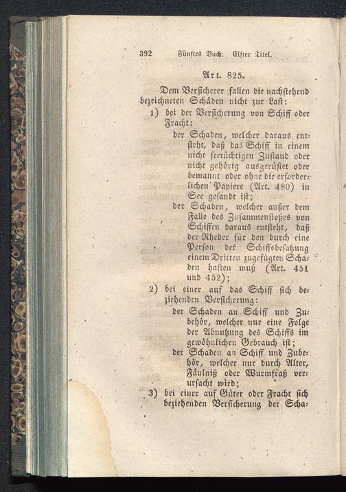 der Schaden, welcher daraus ent-steht, daß das Schiff in einemnicht seetüchtigen Zustand odernicht gehörig ausgerüstet oderbemannt oder ohne die erforderelichen'Papiere (Art. 480) inSee gesandt ist;