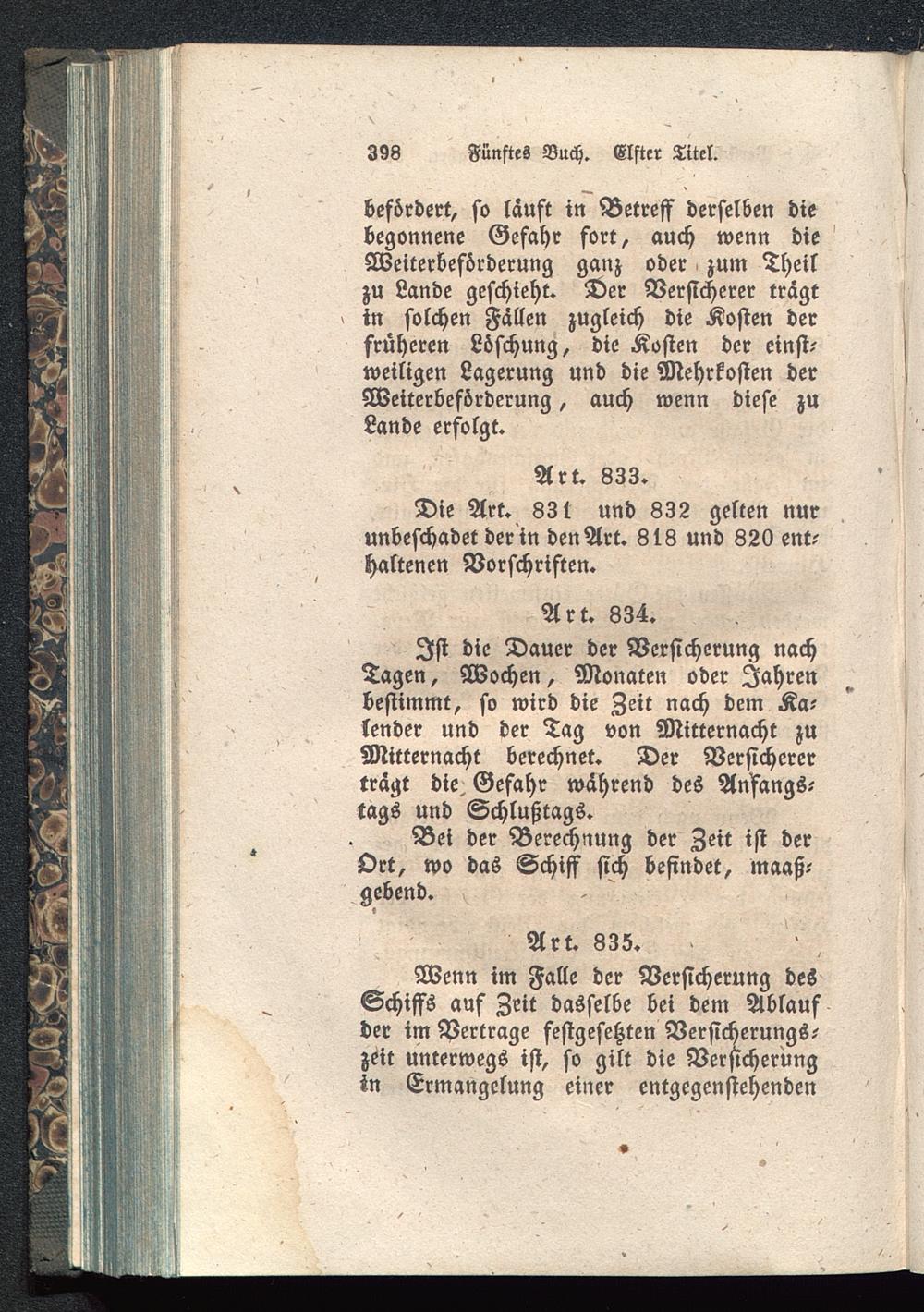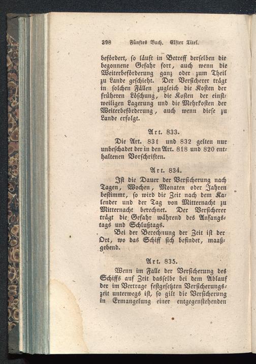 befördert, so läuft in Betreff derselben diebegonnene Gefahr fort, auch wenn dieWeiterbeförderung ganz oder zum Theilzu Lande geschieht. Der Versicherer trägtin solchen Fällen zugleich die Kosten derfrüheren Löschung, die Kosten der einst?weiligen Lagerung und die Mehrkosten derWeiterbeförderung, auch wenn diese zuLande erfolgt.