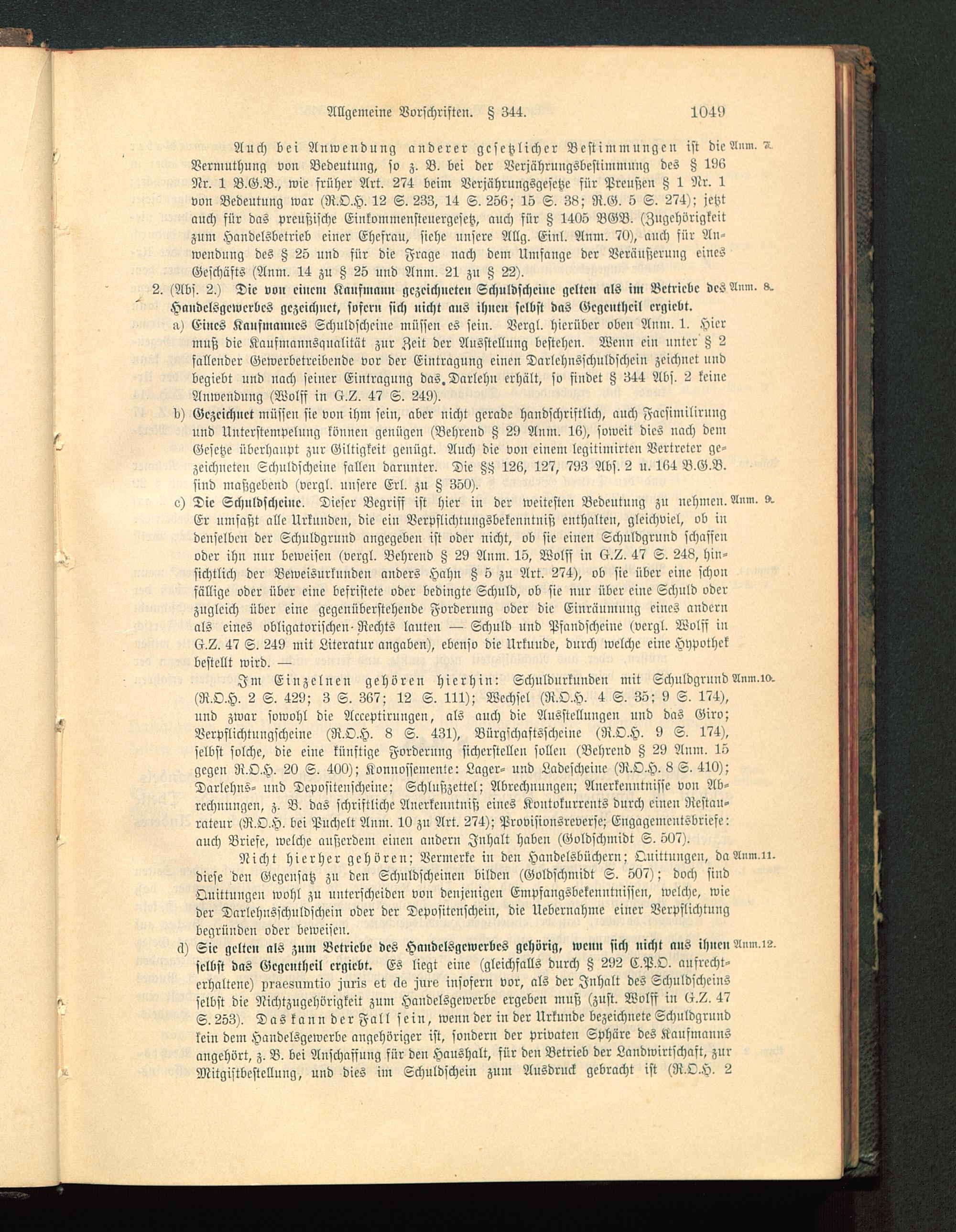 a) Eines Kaufmannes Schuldscheine müsse» es sein. Vergl. hierüber oben Anm. 1. Hiermuß die Kaufmamlsqiialität zur Zeit der Ausstellung bestehen. Wenn ein unter Z 2fallender Gewerbetreibende vor der Eintragung eine» Darlchnsschnldschein zeichnet nndbegiebt und nach seiner Eintragung das.Darlchn erhält, so findet Z 344 Abs. 2 keineAnwendung (Wolfs in v.?. 47 S. 249).