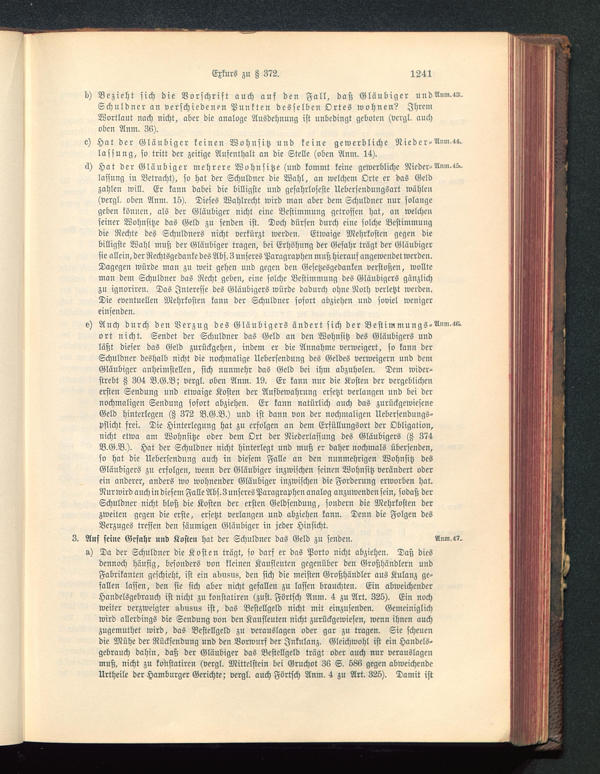 ü) Hat der Gläubiger mehrere Wohnsitze (und kommt keine gewerbliche Nieder-Anm.>-!>.lassung in Betracht), so hat der Schuldner die Wahl, an welchem Orte er das Geldzahlen will. Er kann dabei die billigste und gefahrloseste Ucbcrsendungsart wühle»(vergl. oben Anm. 15). Dieses Wahlrecht wird man aber dem Schuldner nur solangegeben können, als der Gläubiger nicht eine Bestimmung getroffen hat, an welchenseiner Wohnsitze das Geld zu senden ist. Doch dürfen durch ciue solche Bestimmungdie Rechte des Schuldners nicht verkürzt werden. Etwaige Mehrkosten gegen diebilligste Wahl muß der Gläubiger tragen, bei Erhöhung der Gefahr trägt der Gläubigersie allein, der Rechtsgedanke des Abs. 3 unseres Paragraphen mnß hierauf angewendet werden.Dagegen würde man zu weit gehen und gegen den Gesctzesgedanken verstoßen, wollteman dem Schuldner das Recht geben, eine solche Bestimmung des Gläubigers gänzlichzu ignoriren. Das Interesse des Gläubigers würde dadurch ohue Noth verletzt werden.Die eventuellen Mehrkosten kann der Schuldner sofort abziehen und soviel wenigereinsenden.