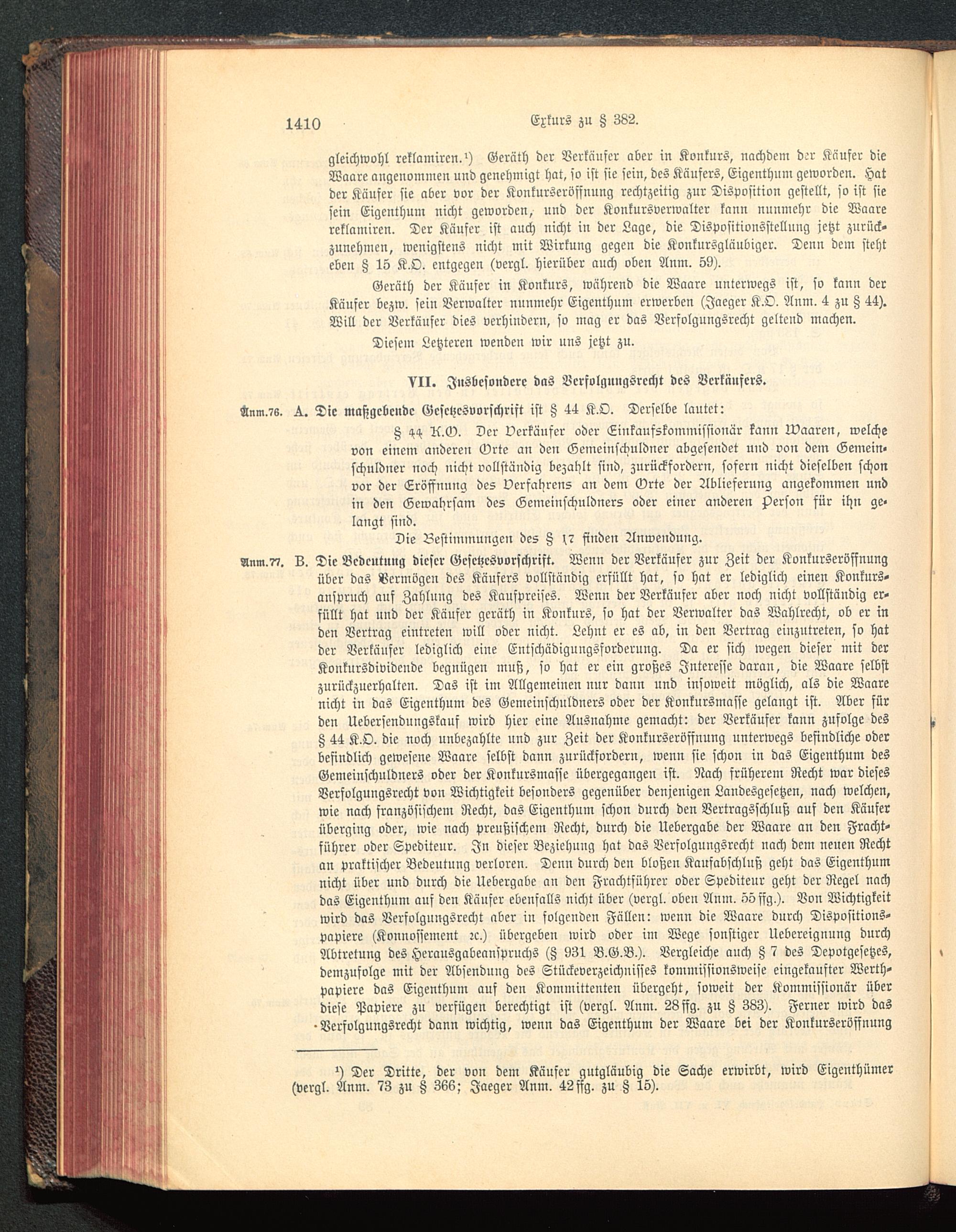 VII. Insbesondere das Vcrfolgnngsrecht des Verkäufers.