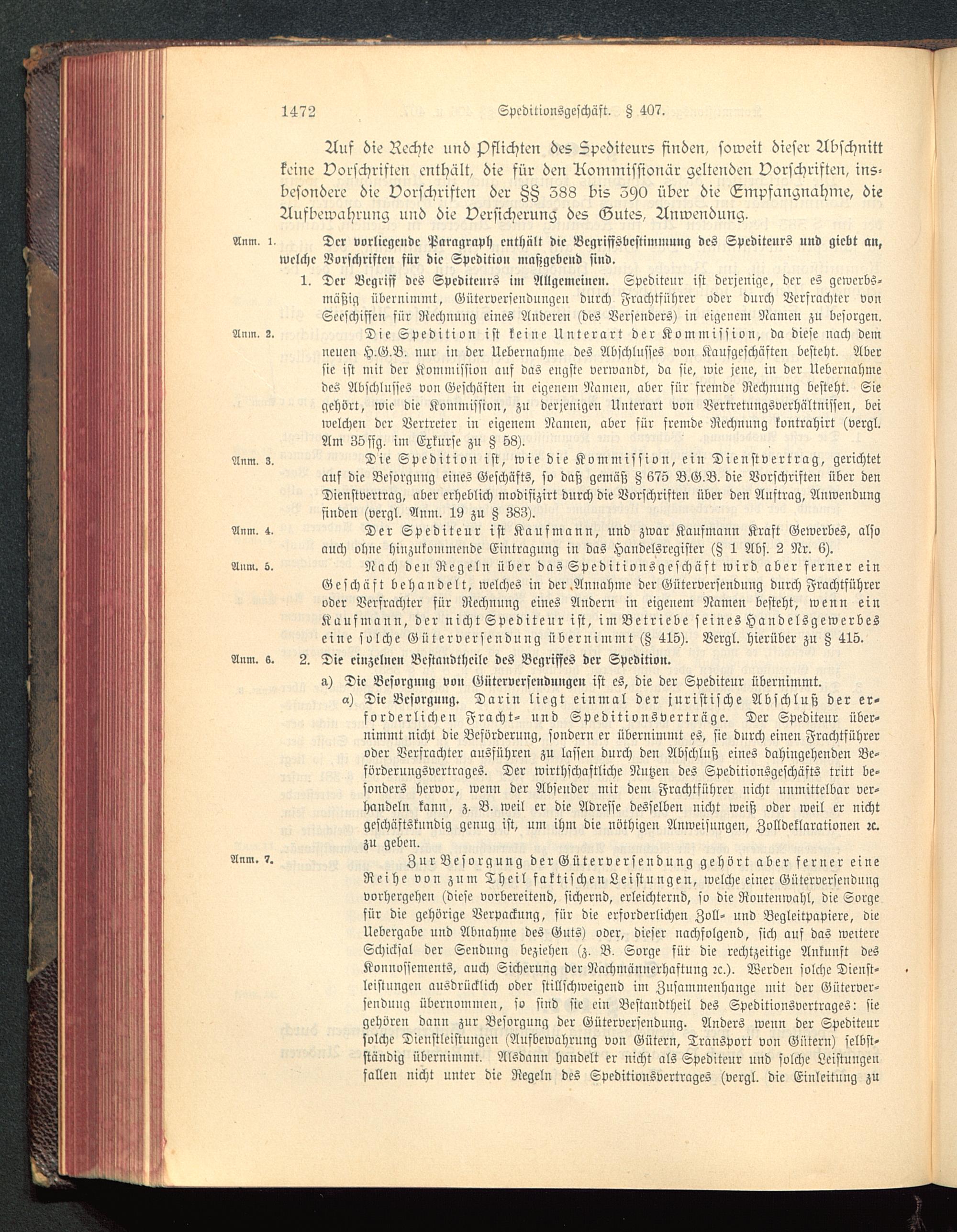 Anm, i. Der vorliegende Paragraph enthält die Begriffsbestimmung des Spediteurs und giebt an,welche Vorschriften für die Spedition massgebend sind.