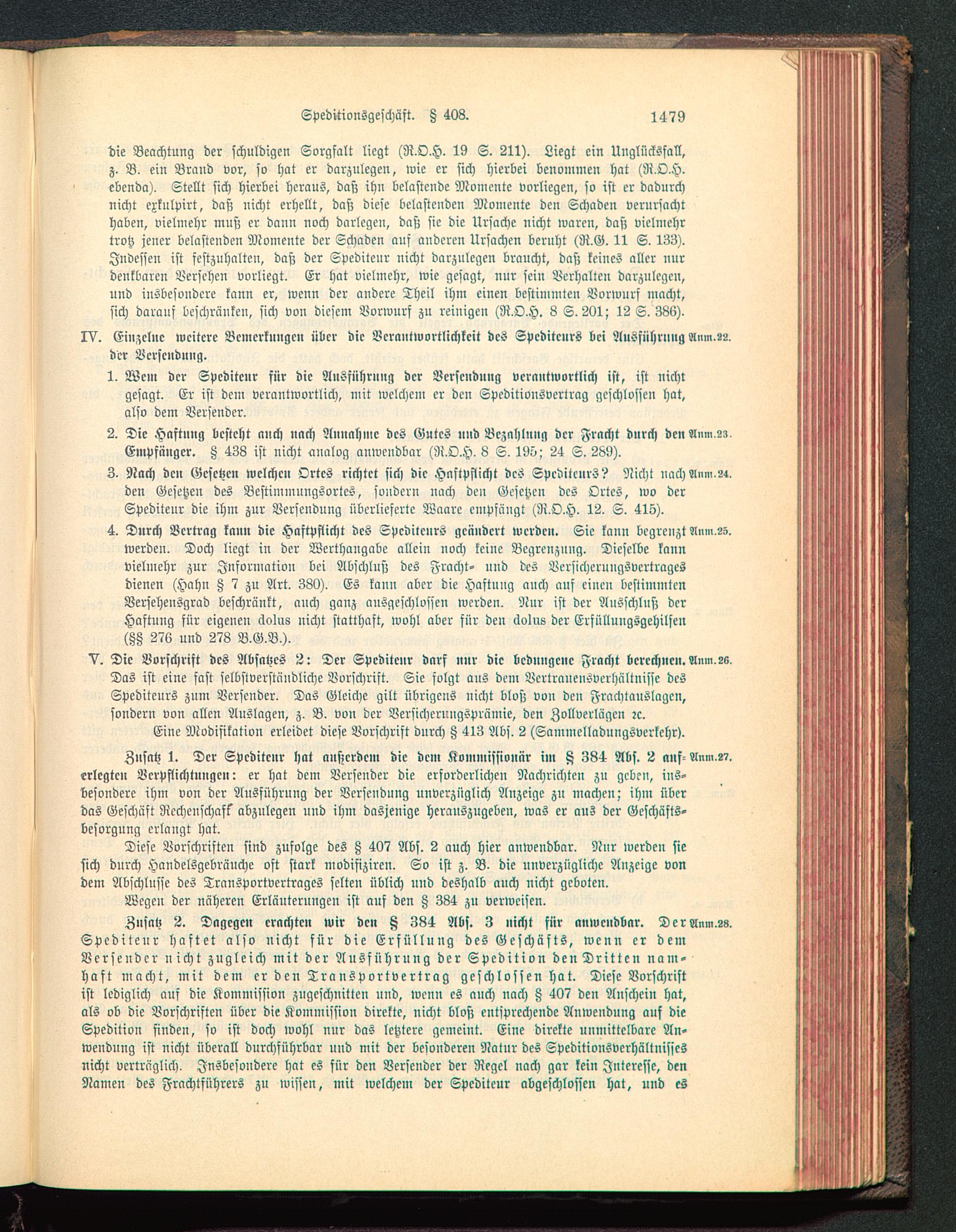 IV. Einzelne weitere Bemerkungen über die Verantwortlichkeit des Spediteurs bei Ausführung Amn.22.der Versendung.