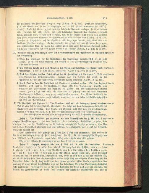 Zusatz 2. Dagegen erachten wir den H 384 Abs. 3 nicht für anwc»dbar. Dcrvlmn.23.Spediteur haftet also nicht für die Erfüllung des Geschäfts, wenn er demVersender nicht zugleich mit der Ausführung der Spedition denDrittcn nam-haft macht, mit dem er den Transportvertrag geschlossen hat. Diese Vorschriftist lediglich auf die Kommission zugeschnitten und, wenn es auch nach § 407 den Anschein hat,als ob die Vorschriften über die Kommission direkte, nicht bloß entsprechende Anwendung auf dieSpedition finden, so ist doch wohl nur das letztere gemeint. Eine direkte unmittelbare An-wendung ist nicht überall durchführbar uud mit der besonderen Natur des Speditionsverhältnisscsnicht verträglich. Insbesondere hat es für den Versender der Regel nach gar kein Interesse, denNamen des Frachtführers zn wissen, mit welchem der Spediteur abgeschlossen hat, und es
