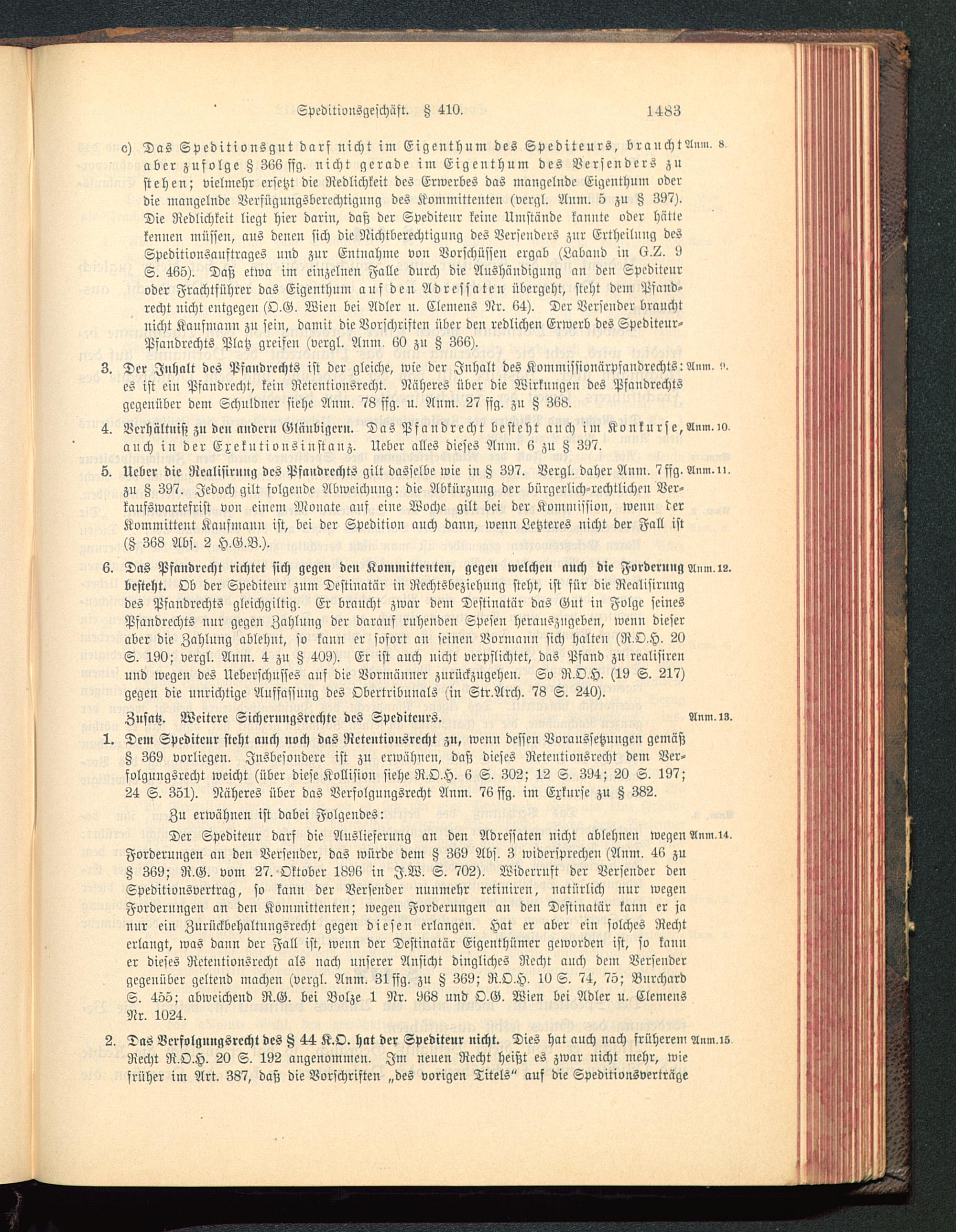 5. Ueber die Renlisirnng des Pfandrechts gilt dasselbe wie in Z 337. Vergl. daher Anm. 7fsg. Anm.n.zn K 337. Jedoch gilt folgende Abweichung: die Abkürzung der bürgerlich-rechtlichen Ver-kaufswartefrist von einem Monate auf eine Woche gilt bei der Kominission, wenn derKommittent Kaufmann ist, bei der Spedition auch dann, wenn Letzteres nicht der Fall ist