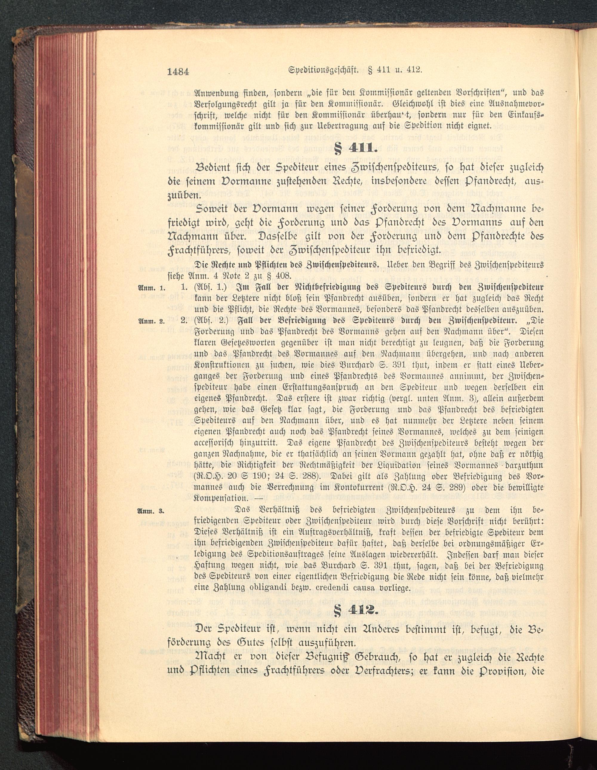 Anm. s. Das Verhältniß des befriedigten Zwischenspediteurs zu dem ihn be-