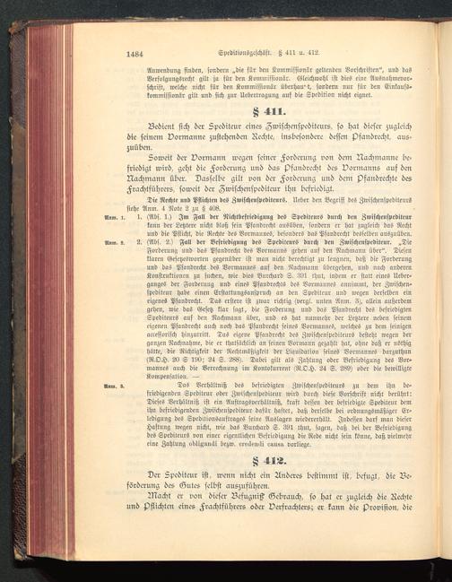 Speditionsgeschäft. Z 411 u. 412.
