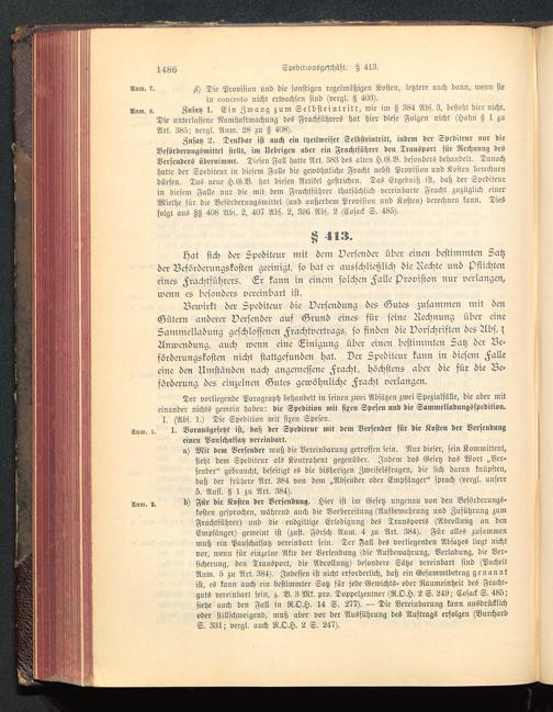 «nm. 8. Zusatz 1. Ein Zwang zum Selbsteintritt, wie im Z 384 Abs. 3, besteht hier nicht.Die unterlassene Namhaftinachung des Frachführers hat hier diese Folgen nicht (Hahn Z 1 zuArt. 385; vergl. Anm. 28 zu Z 408).