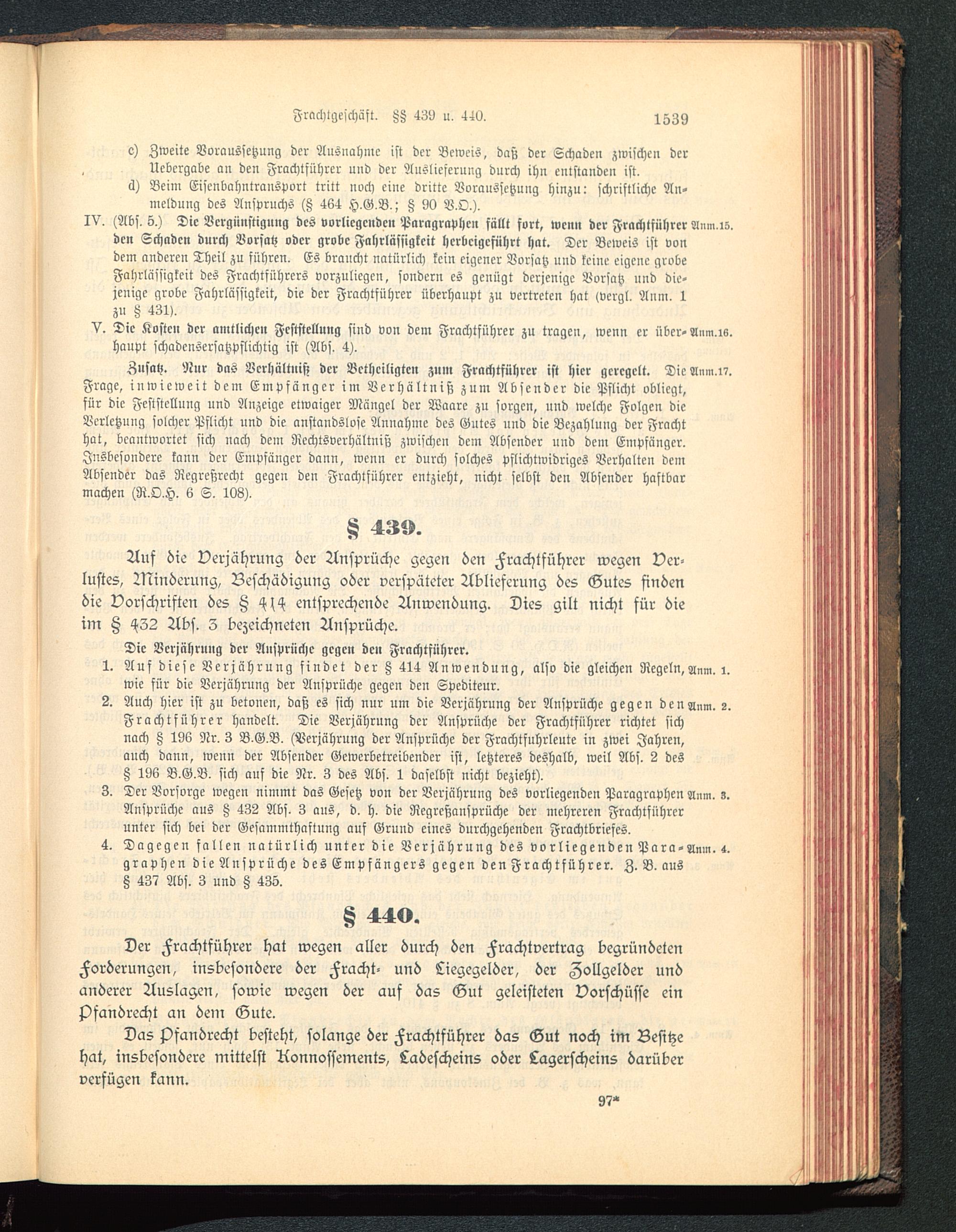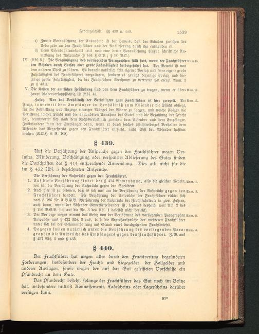 3. Der Vorsorge wegen nimmt das Gesetz von der Verjährung des vorliegenden Paragraphen Anm. 8.Ansprüche aus § 432 Abs. 3 ans, d. h. die Negrcßansprüche der mehreren Frachtführerunter sich bei der Gcsammthastung auf Grund eines durchgehenden Frachtbriefes.