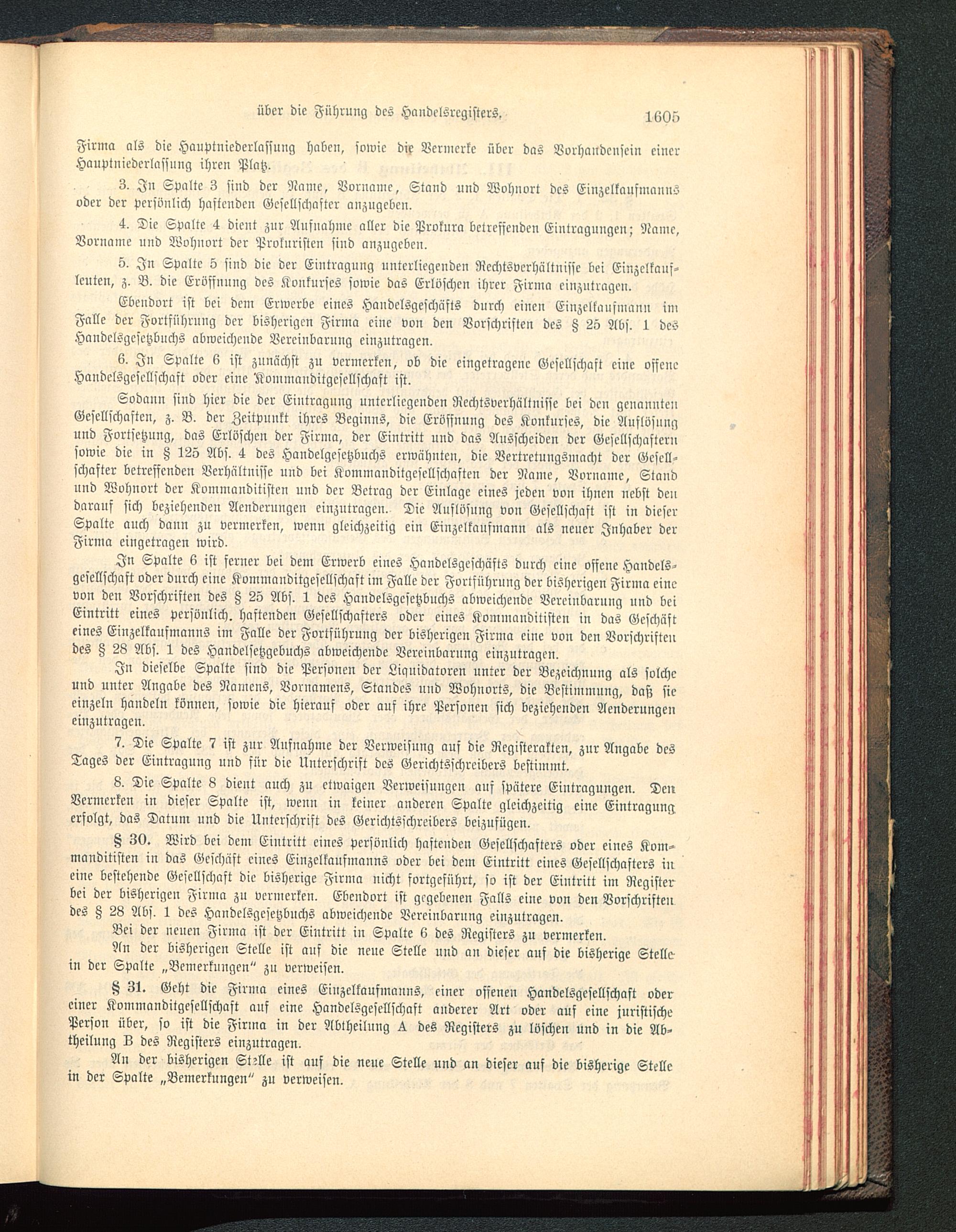 In Spalte 6 ist ferner bei dem Erwerb eines Handelsgeschäfts dnrch eine offene Handels-gesellschaft oder durch eine Kommanditgesellschaft im Falle der Fortführnng der bisherigen Firma einevon den Vorschriften des Z 25 Abs. 1 des Handelsgesetzbuchs abweichende Vereinbarung und beiEintritt eines persönlich, haftenden Gesellschafters oder eines Kommauditisteu in das Gcschästeines Einzelkausmanns im Falle der Fortführung der bisherigen Firma eine von den Vorschriftendes ß 28 Abs. 1 des Handclsetzgcbuchs abweichende Vereinbarung einzutragen.