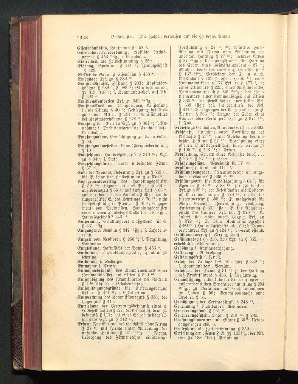 Eiseiiblilinsiskns, Kaufmann Z 452EiscnbahnvcrkchrSordmmg, revisible Rechts-norm? Z 453 -ffg., f. Eisenbahn.Eisfreihcit, als Zeitbestimmung § 359.Eisgang, Spedition K 414 »; Frachtgeschäftö 428.