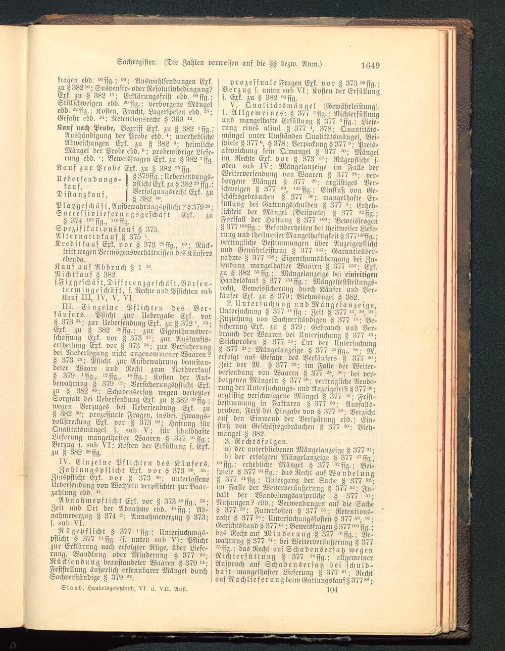 Rügepflicht 8 377 -ffg.: Untersuchungs-Pflicht 8 377 "ffg. (s. unten sud V): Pflichtzur Erklärung »ach erfolgter Rüge, über Liefe-rung, Wandlnug oder Minderung 8 377 --:Rücksendung beanstandeter Waaren 8 379 ";Feststellung äußerlich erkennbarer Mängel durchSachverständige 8 379