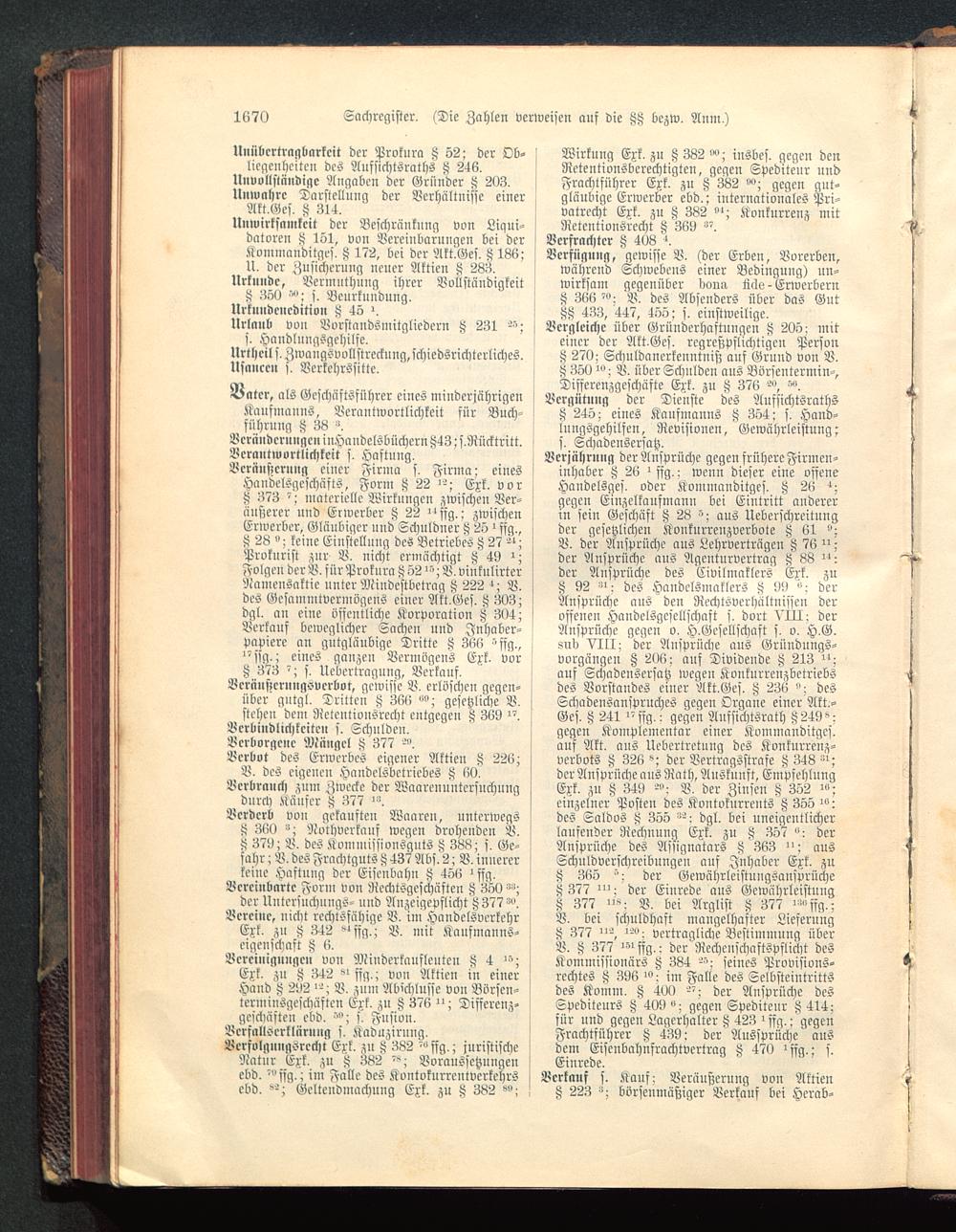 Vcräustcruiig einer Airina s, Firma: einesHandelsgeschäfts, Form t> 22 >'-; Exk. vor !8 373 '; materielle Wirkungen zwischen Ver- Iäußerer und Envcrbcr t? 22 ^^ffg.; zwischen !Erwerbcr, Gläubiger und Schuldner H 25 > sfg,,t? 28 "; keine Einstellung des Betriebes ^ 27 '"; jProkurist zur V. nicht ermächtigt F 49 ^;folgen der V, für Prokura tj 52 >"; B. vinknlirterRainensaktic uutcr Miudcstbctrag i> 222 '; V.des Gcsammtvermvgeus einer Akt.Gef. !; 303;dgl, an eine öffentliche Korporation H 304; ^Verkauf beweglicher Sachen und Inhaber-Papiere an giitgläubige Dritte Z 366 -ffg., j"sfg,; eines ganzen Vermögens Exk, vorH 373 -; s, Ucbcrtragung, Verkauf,
