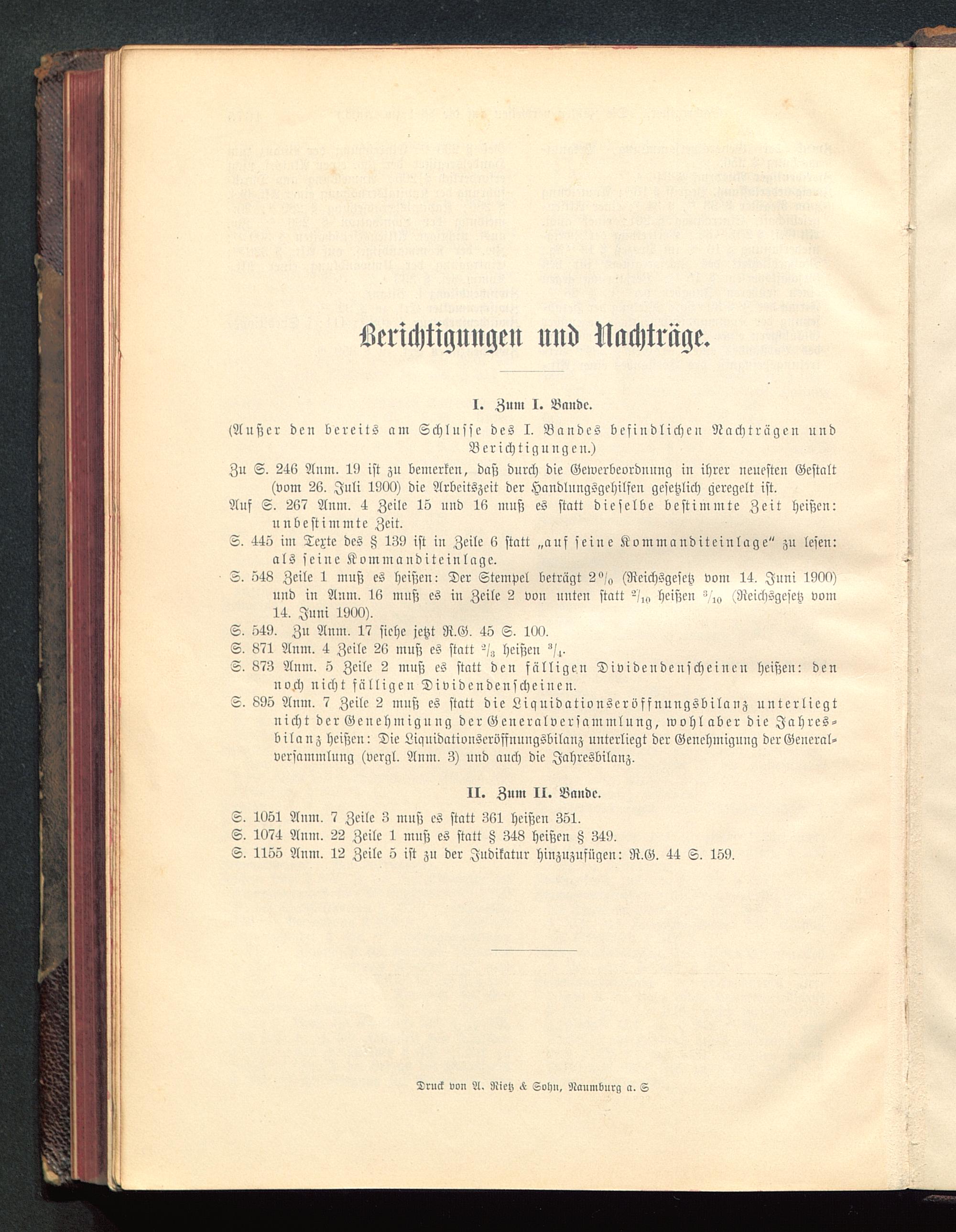 Zu S. 246 Anm. 19 ist zu bemerken, daß durch die Gewerbeordnung in ihrer neuesten Gestalt(vom 26. Juli 1900) die Arbeitszeit der Handlungsgehilfen gesetzlich geregelt ist.