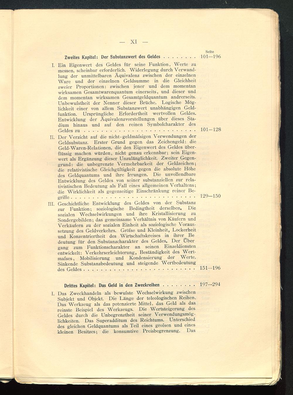III. Geschichtliche Entwicklung des Geldes von der Substanzzur Funktion; soziologische Bedingtheit derselben. Diesozialen Wechselwirkungen und ihre Kristallisierung zuSondergebilden; das gemeinsame Verhältnis von Käufern undVerkäufern zu der sozialen Einheit als soziologische Voraus-setzung des Geld Verkehrs. Gröfse und Kleinheit, Lockerheitund Konzentriertheit des Wirtschaftskreises in ihrer _ Bedeutung für den Substanzcharakter des Geldes. Der Übergang zum Funktionscharakter an seinen Einzeldienstenentwickelt: Verkehrserleichterung, Beständigkeit des Wert-mafses, Mobilisierung und Kondensierung der Werte.Sinkende Substanzbedeutung und steigende Wertbedeutungdes Geldes.