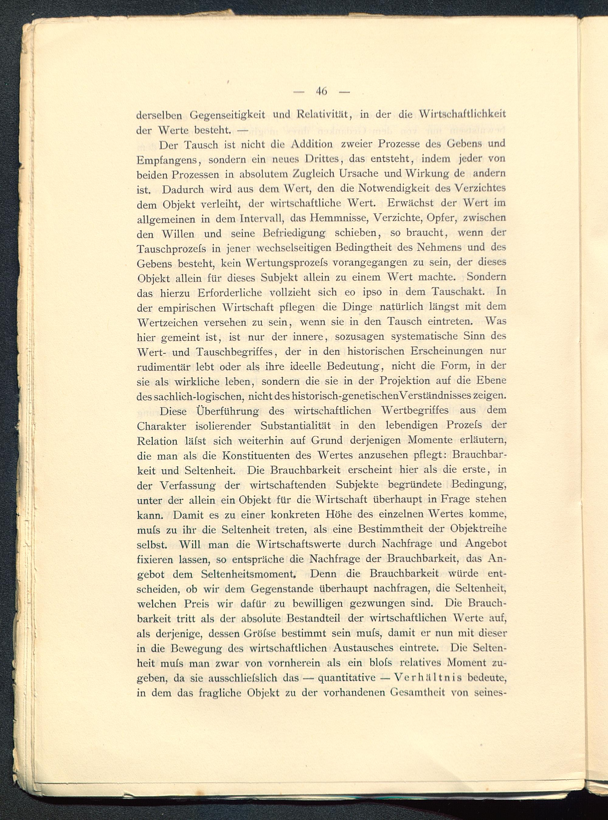 derselben Gegenseitigkeit und Relativität, in der die Wirtschaftlichkeitder Werte besteht. —