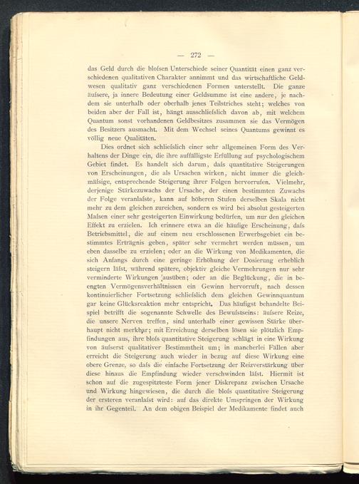 das Geld durch die blolsen Unterschiede seiner Quantität einen ganz ver-schiedenen qualitativen Charakter annimmt und das wirtschaftliche Geld-wesen qualitativ ganz verschiedenen Formen unterstellt. Die ganzeäufsere, ja innere Bedeutung einer Geldsumme ist eine andere, je nach-dem sie unterhalb oder oberhalb jenes Teilstriches steht; welches vonbeiden aber der Fall ist, hängt ausschliefslich davon ab, mit welchemQuantum sonst vorhandenen Geldbesitzes zusammen sie das Vermögendes Besitzers ausmacht. Mit dem Wechsel seines Quantums gewinnt esvöllig neue Qualitäten.