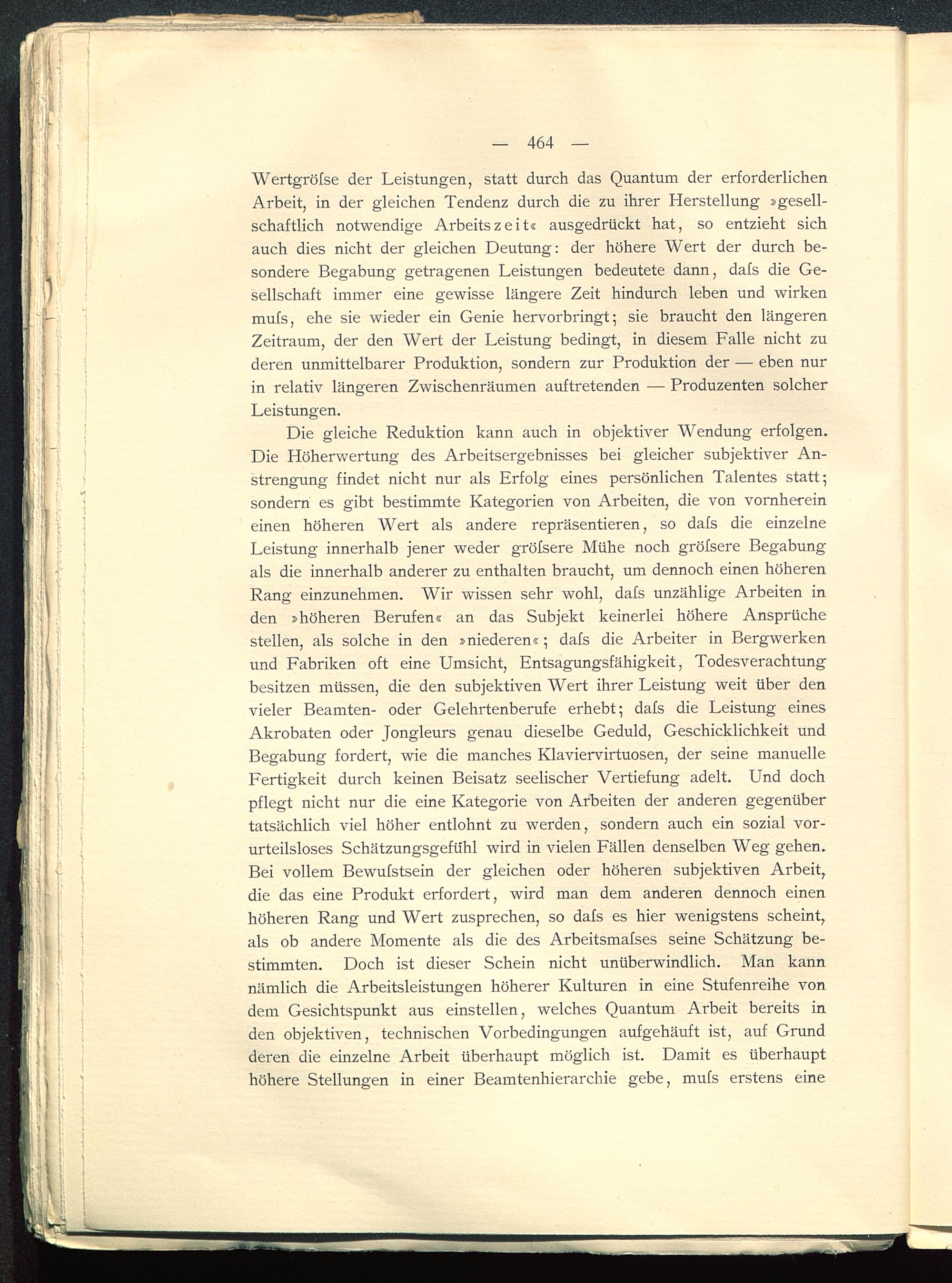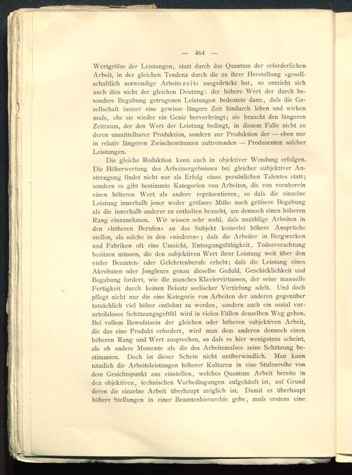 Wertgröfse der Leistungen, statt durch das Quantum der erforderlichenArbeit, in der gleichen Tendenz durch die zu ihrer Herstellung »gesell-schaftlich notwendige Arbeitszeit« ausgedrückt hat, so entzieht sichauch dies nicht der gleichen Deutung: der höhere Wert der durch be-sondere Begabung getragenen Leistungen bedeutete dann, dafs die Ge-sellschaft immer eine gewisse längere Zeit hindurch leben und wirkenmufs, ehe sie wieder ein Genie hervorbringt; sie braucht den längerenZeitraum, der den Wert der Leistung bedingt, in diesem Falle nicht zuderen unmittelbarer Produktion, sondern zur Produktion der — eben nurin relativ längeren Zwischenräumen auftretenden — Produzenten solcherLeistungen.