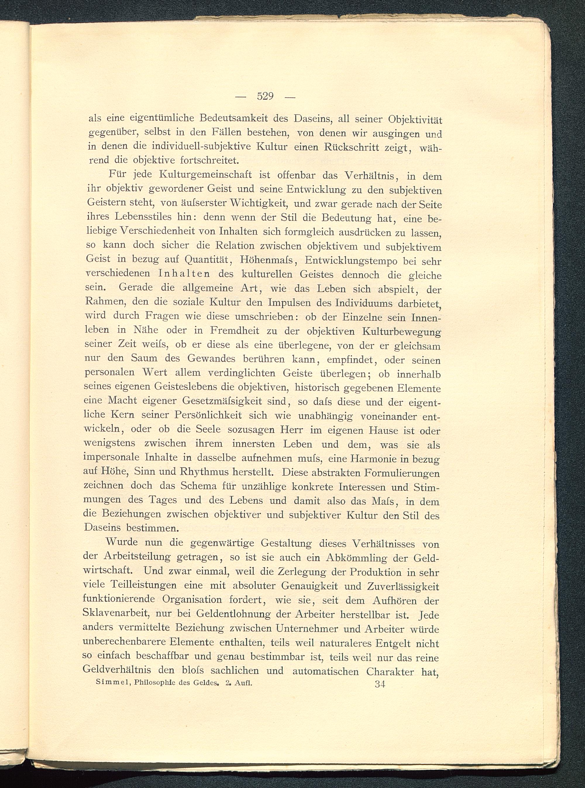 als eine eigentümliche Bedeutsamkeit des Daseins, all seiner Objektivitätgegenüber, selbst in den Fällen bestehen, von denen wir ausgingen undin denen die individuell-subjektive Kultur einen Rückschritt zeigt, wäh-rend die objektive fortschreitet.