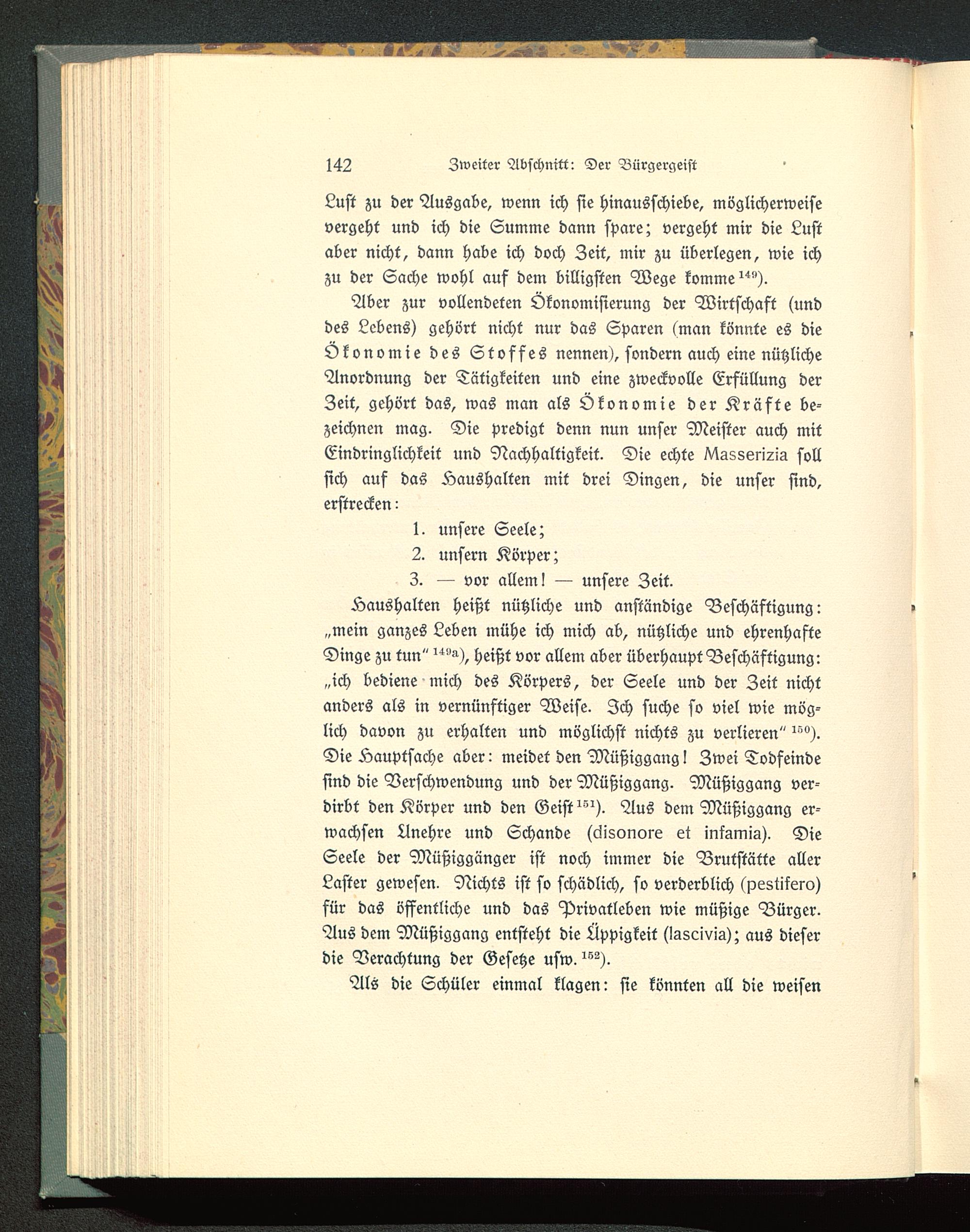 Aber zur vollendeten Ökonomisierung der Wirtschaft (unddes Lebens) gehört nicht nur das Sparen (man könnte es dieÖkonomie des Stoffes nennen), sondern auch eine nützlicheAnordnung der Tätigkeiten und eine zweckvolle Erfüllung derZeit, gehört das, was man als Ökonomie der Kräfte be-zeichnen mag. Die predigt denn nun unser Meister auch mitEindringlichkeit und Nachhaltigkeit. Die echte ^3S8eri?ia sollsich aus das .Haushalten mit drei Dingen, die unser sind,erstrecken: