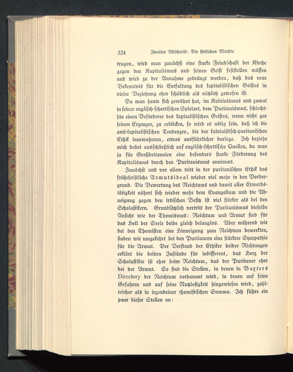 Da man heute sich gewöhnt hat, im Kalvinismus und zumalin seiner englisch -schottischen Spielart, dem Puriranismus, schlecht-hin einen Beförderer des kapitalistischen Geistes, wenn nicht garseinen Erzeuger, zu erblicken, so wird es nötig sein, daß ich dieanti-kapitalistischen Tendenzen, die der kalvinistisch-puritanischenEthik innewohnten, etwas ausführlicher darlege. Ich beziehemich dabei ausschließlich auf englisch -schottische Quellen, da manja für Großbritannien eine besonders starke Förderung desKapitalismus durch den Puritanismus annimmt.