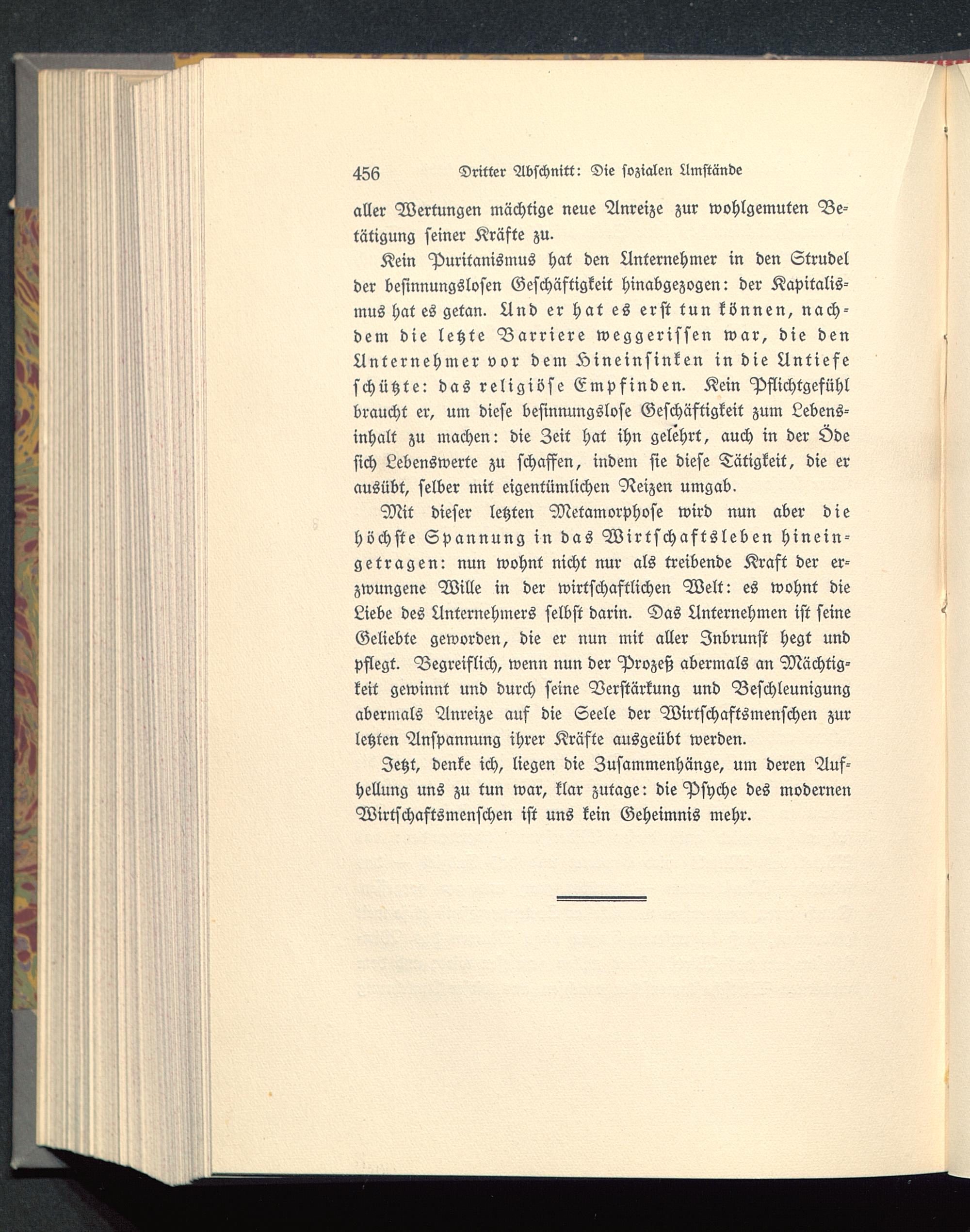 Jetzt, denke ich, liegen die Zusammenhänge, um deren Auf-hellung uns zu tun war, klar zutage: die Psyche des modernenWirtschaftsmenschen ist uns kein Geheimnis mehr.