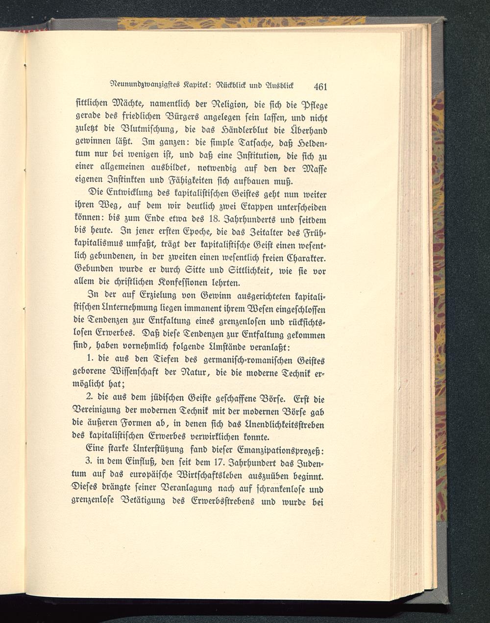 3. in dem Einfluß, den seit dem 17. Jahrhundert das Juden-tum auf das europäische Wirtschaftsleben auszuüben beginnt.Dieses drängte seiner Veranlagung nach auf schrankenlose undgrenzenlose Betätigung des Erwerbsstrebens und wurde bei