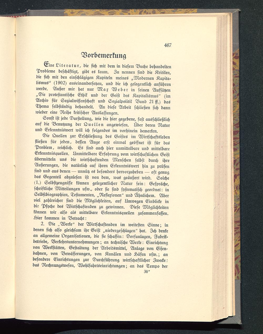 Eine Literatur, die sich mit dem in diesem Buche behandeltenProbleme beschäftigt, gibt es kaum. Zu nennen sind die Kritiken,die sich mit den einschlägigen Kapiteln meines „Modernen Kapita-lismus" (1902) auseinandersetzen, und die ich gelegentlich anführenwerde. Außer mir hat nur Max Weber in seinen Aufsätzen„Die protestantische Ethik und der Geist des Kapitalismus " (imArchiv für Sozialwissenschast und Sozialpolitik Band 21 ff.) dasThema selbständig behandelt. An diese Arbeit schließen sich dannwieder eine Reihe kritischer Auslassungen.