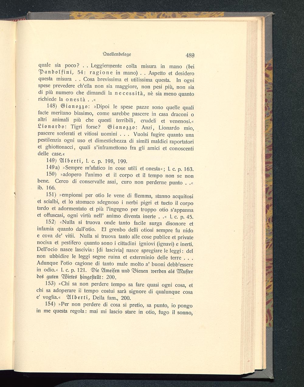 152) «^lulla si truova onde tanto f^cile sur^a äisonore etinkamia quanto ^all'otio. rll Arenbo cielli otiosi sempre tu nicloe cova 6e' vitii. I^uIIa si truova tanto alle cose publice et privatenociva et pestikero czuanto sono i cittaciini iZniovi (i^navi) e inerti.Oell'ocio nasce lascivia: s6i lascivia) nasce spreZisre le le^xi: clelnon ubbiclire le le^Ai sexne ruina et exterrninio clelle terre . . .^clunque I'otio ca^ione cli tanto male molto a' buoni clebb'esserein oclio.« l. c. p. 121. Die Ameisen und Bienen werden als Musterdes guten Wirtes hingestellt: 200.