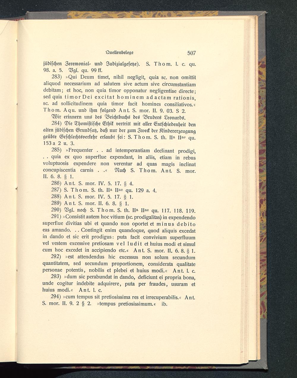284) Die Thomistische Ethik vertritt mit aller Entschiedenheit denalten jüdischen Grundsatz, daß nur der zum Zweck der Kindercrzcugunggeübte Geschlechtsverkehr erlaubt sei: 8.1 no m. 8. tli. II" Il-w ^u.153 a 2 u. 3.