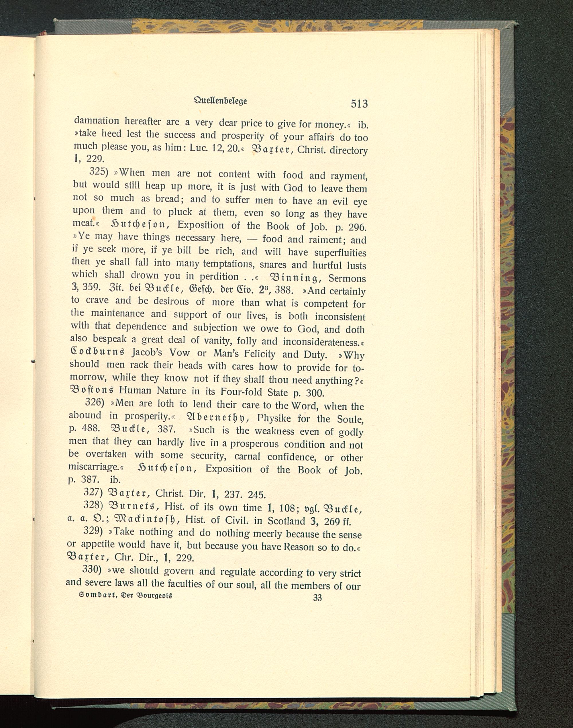 325) »V^tien men are not content vvitk koocl anä ravment,but woulcl still keap up more, it is just witk Lioä to leave tkemnot so muck ÄS breacl; ancl to sukker men to kave an evil eveupon tnem ancl to pluclc at tkem, even so loriA as tkev kavemeat.« Kutcheson, Exposition ok tke kook ok ^ob. p. 29k.»Ve mav kave tkin^s necessarv kere, — tooä ancl raiment; anäik ve seel< more, ik ve bill de rick, an6 will kave superkluitiestlien ve skall rall into manv temptations, snares ancl kurrkul lustsxvkick skall clrov^n vou in perclition . .« Binning, Lermons3,359. Zit. bei Buckle, Gesch. der Civ. 2», 388. -/m6 cerwinlvto crave anci de äesirous ok more tkan wkat !s competent kortke MÄintenance ancl support or our lives, is botk inconsistentv/itn tkat clepen6ence sn6 subjection we owe to (Zocl, 3n6 clotkalso bespealc a Areat cleal or vanitv, toll)? an6 inconsiäerÄteness.«Cockburns Jacob's Vow or Elan's k^elicitv anä Out)?. »Vi^kvsnoulä men rack tkeir keaäs witk csres koxv to proviäe kor to-morrovv, wkile tkev knov/ not ik tkev skall tkou neeci anvtkin^?«Bostons Human I>lÄture in its k^our-rolcl Ltate p. 300.